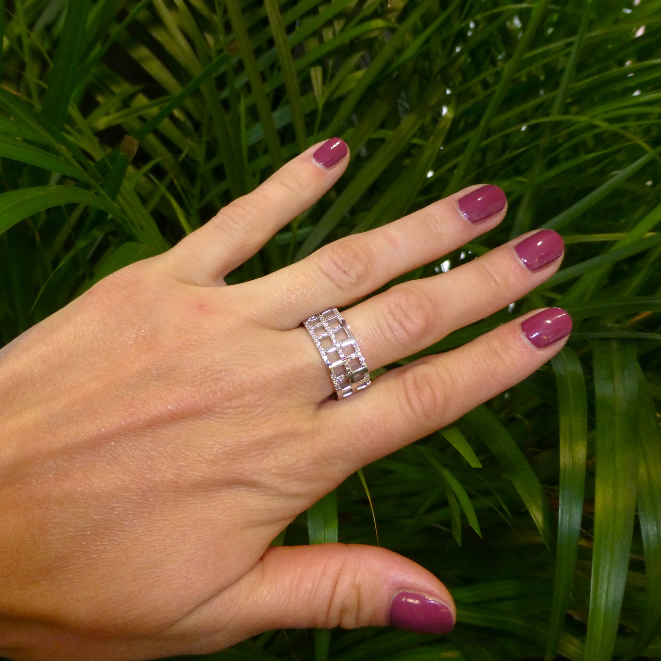 Anillo Ancho Cuadricula con Diamantes