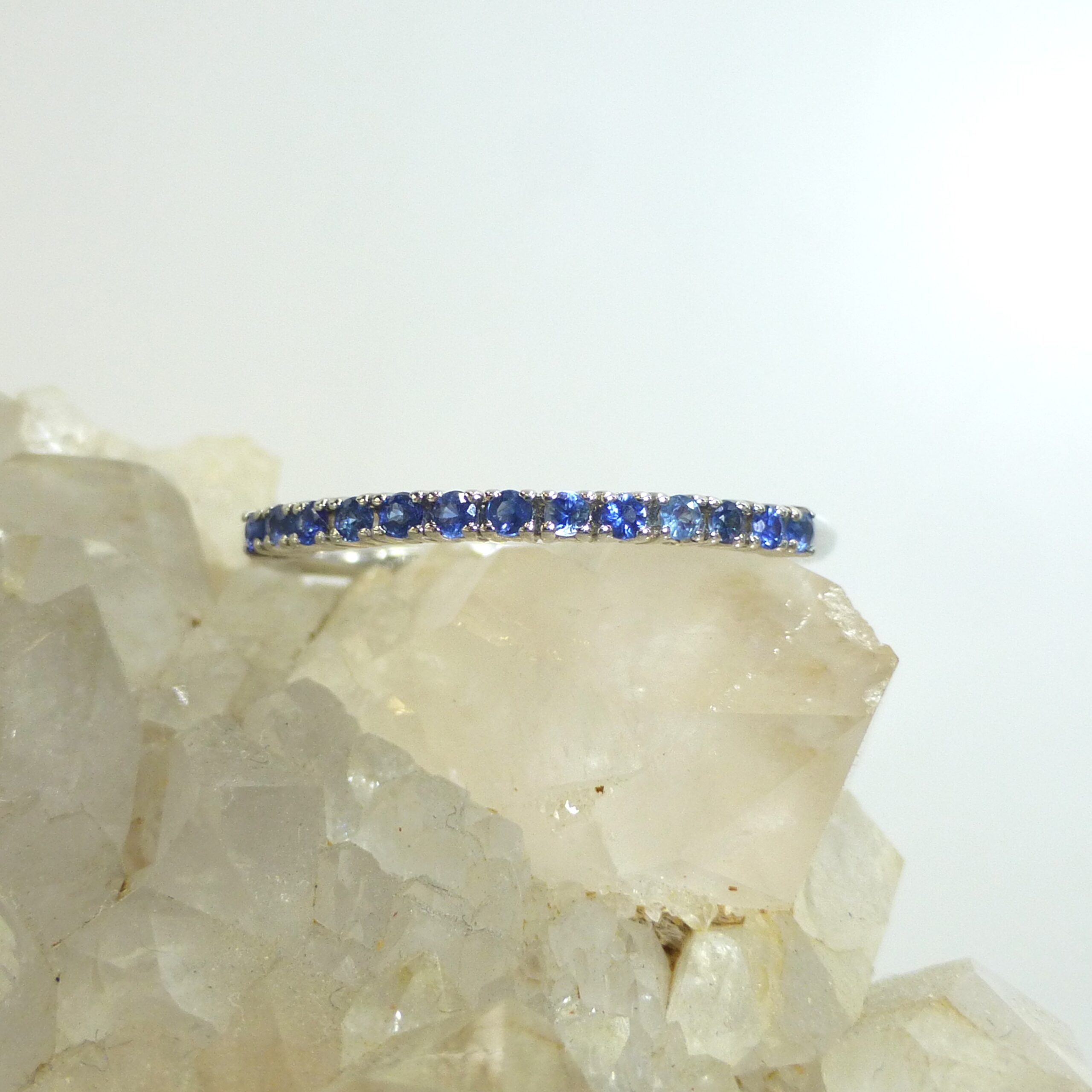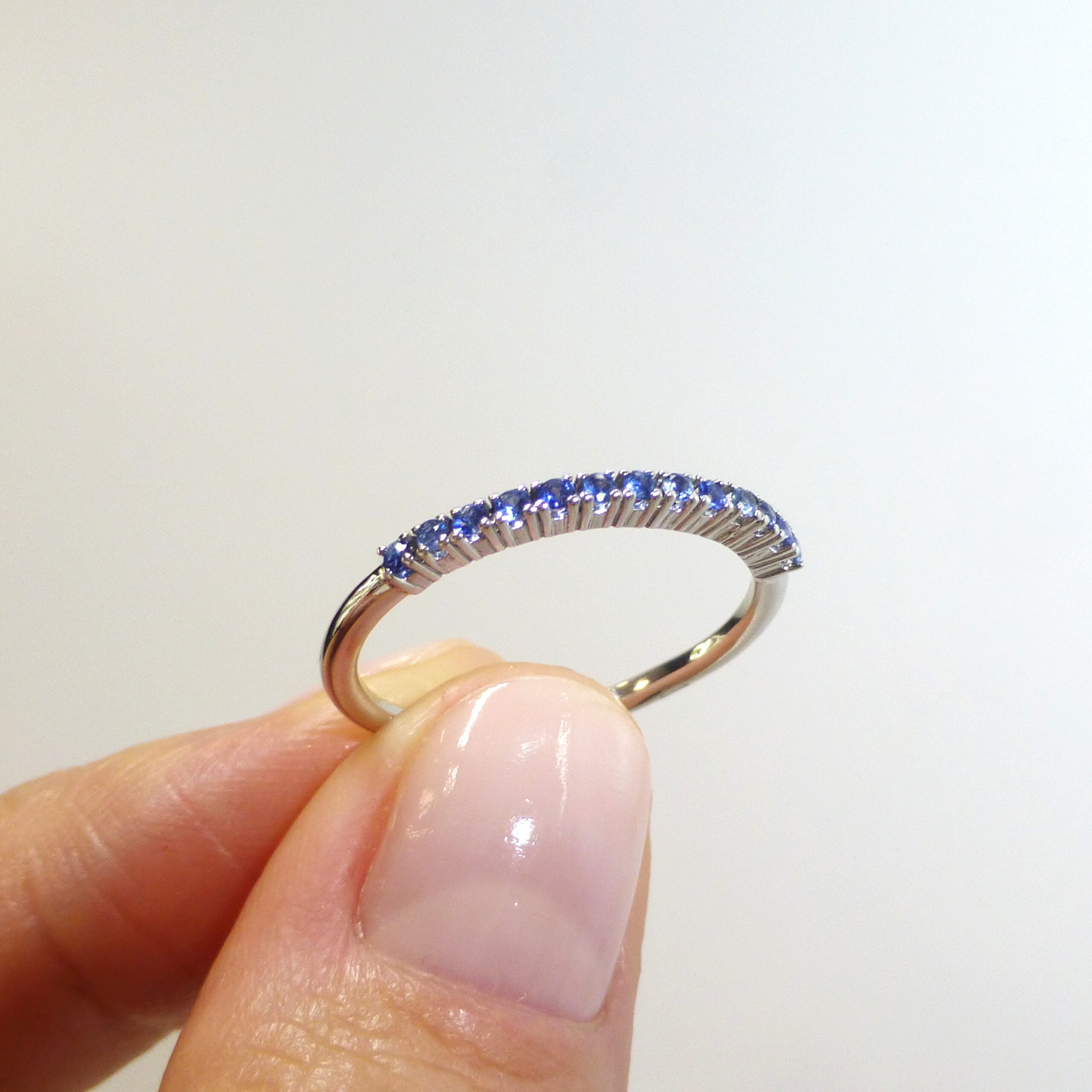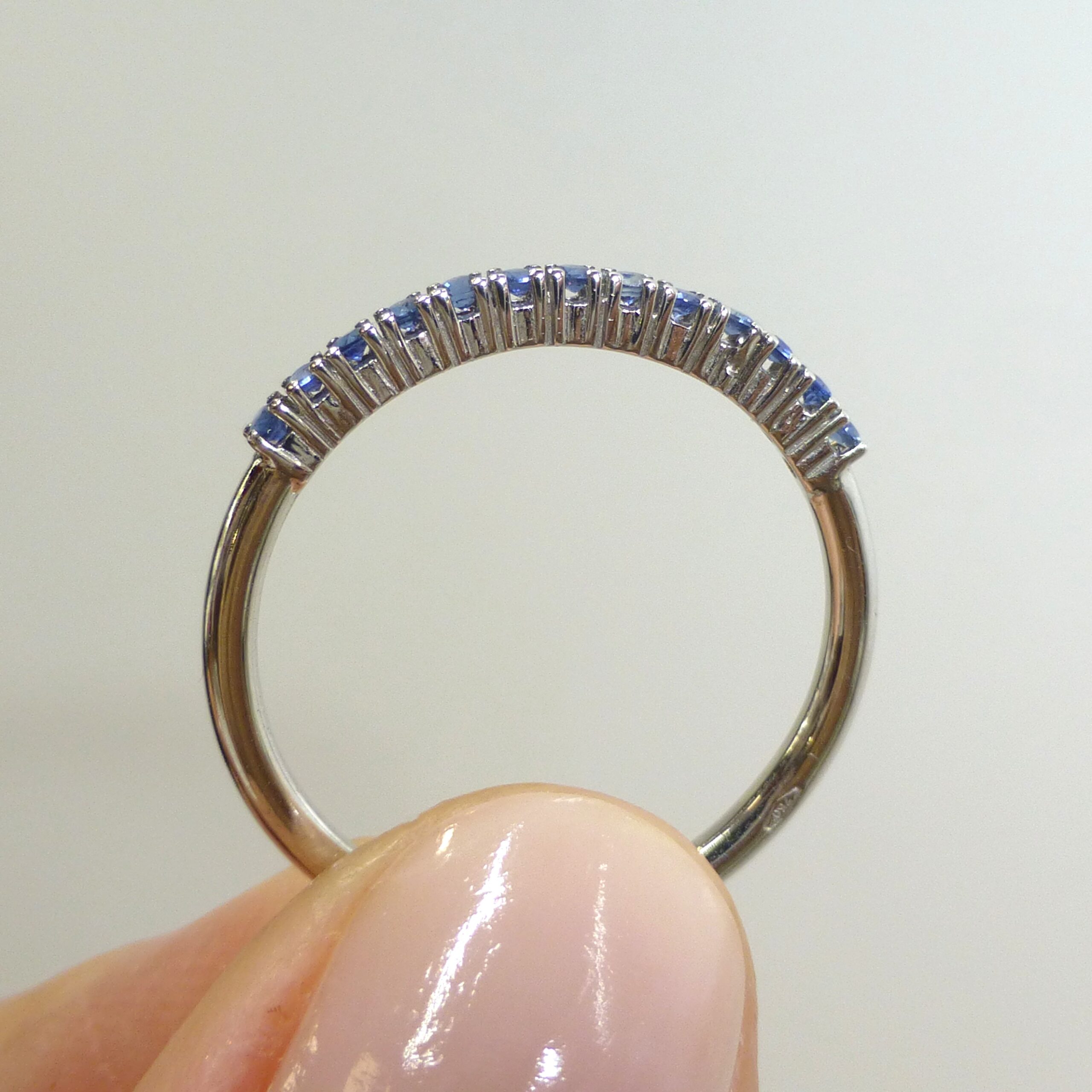 Anillo, media alianza, en Oro blanco de 1ª Ley con Zafiros de 0,13 ct.