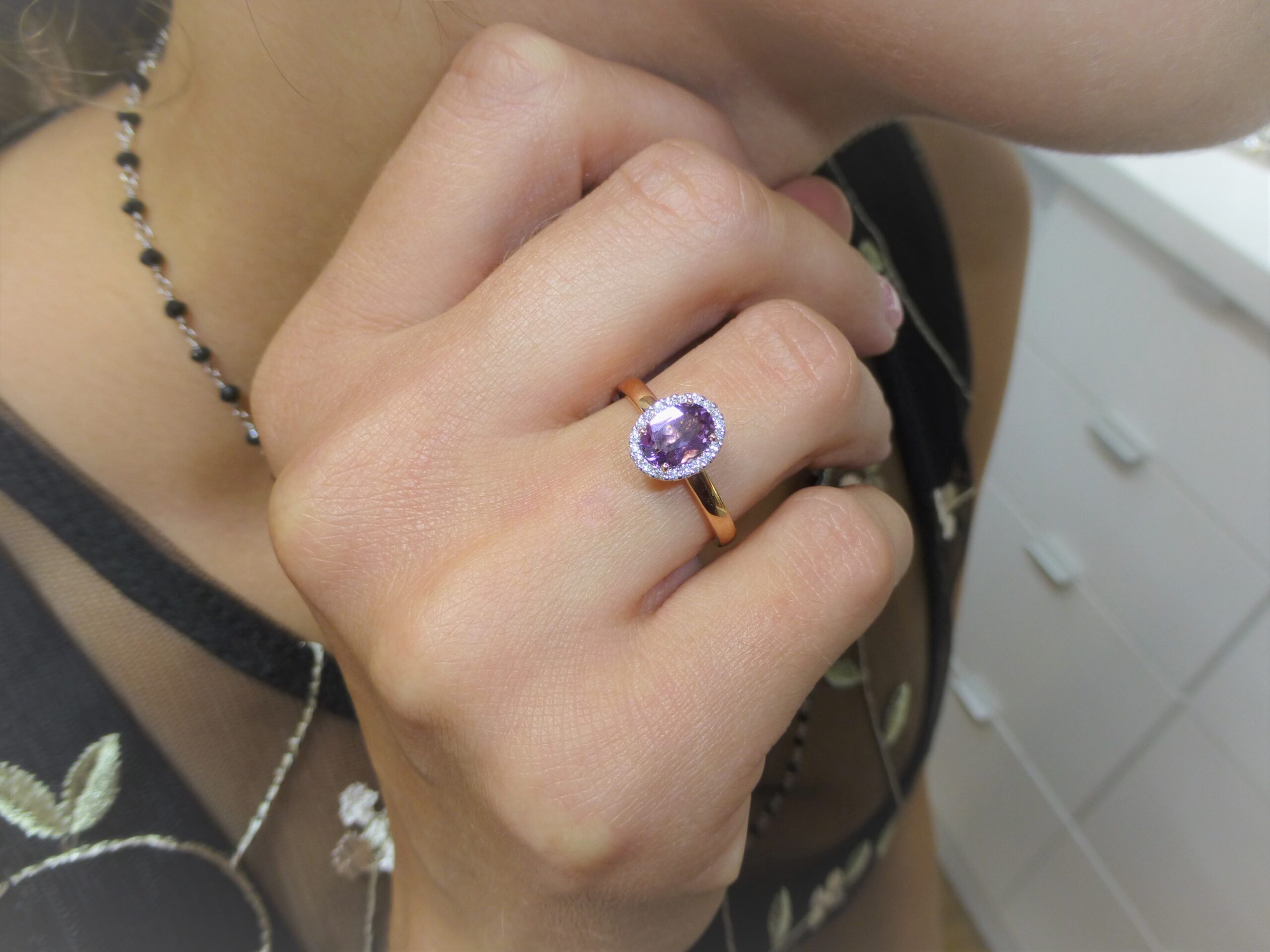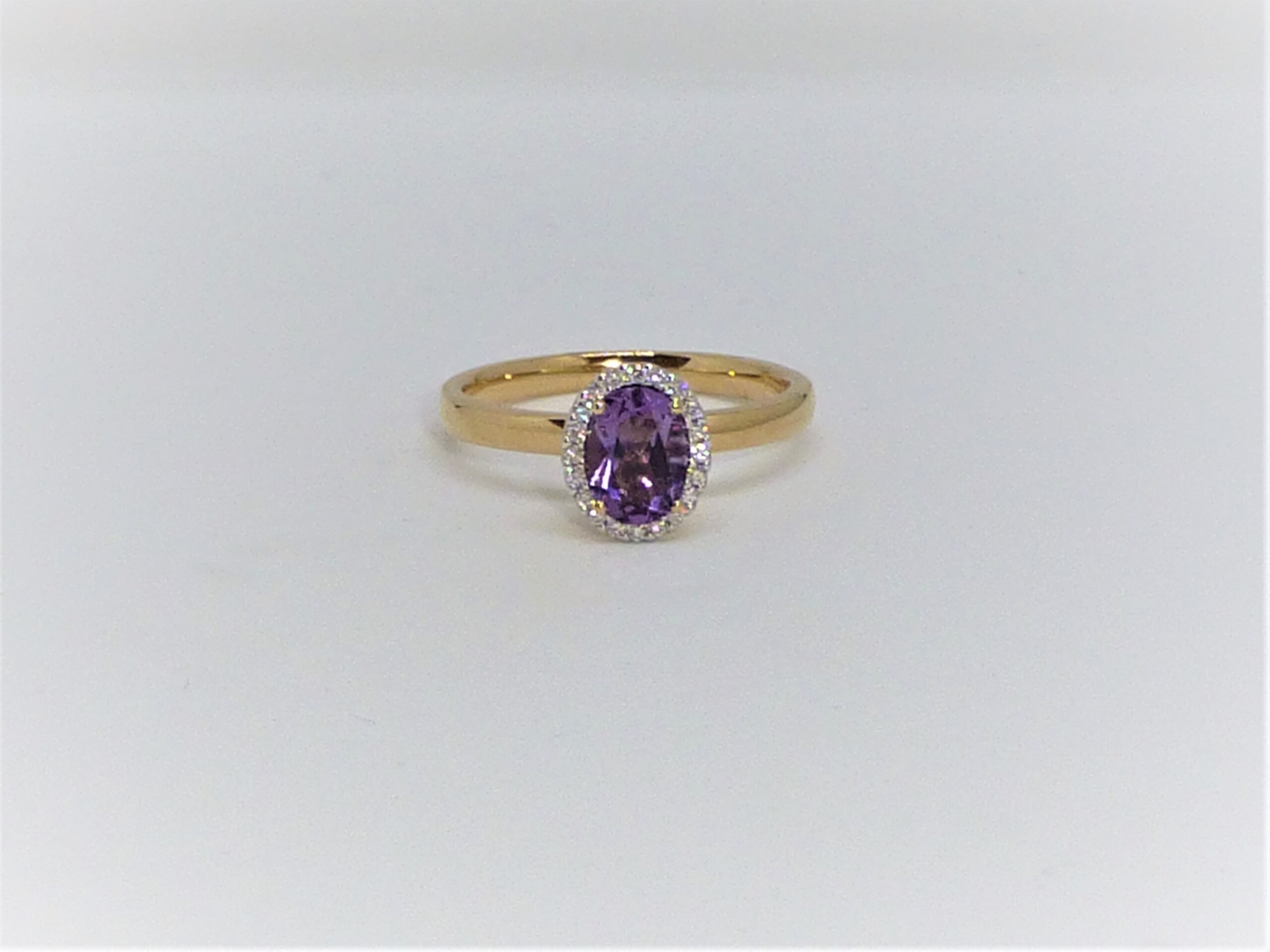 Anillo en Oro de 1ª Ley con Amatista natural y Diamantes.