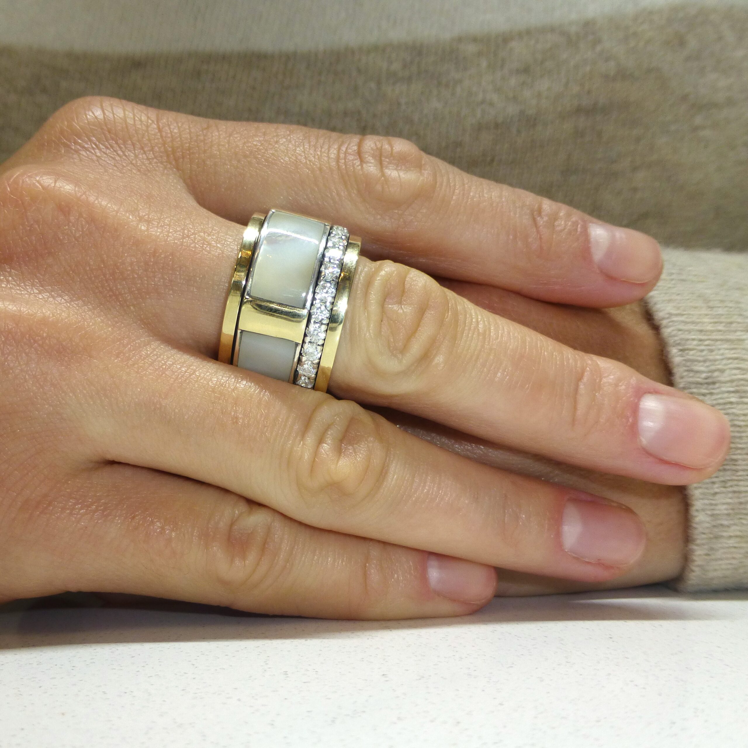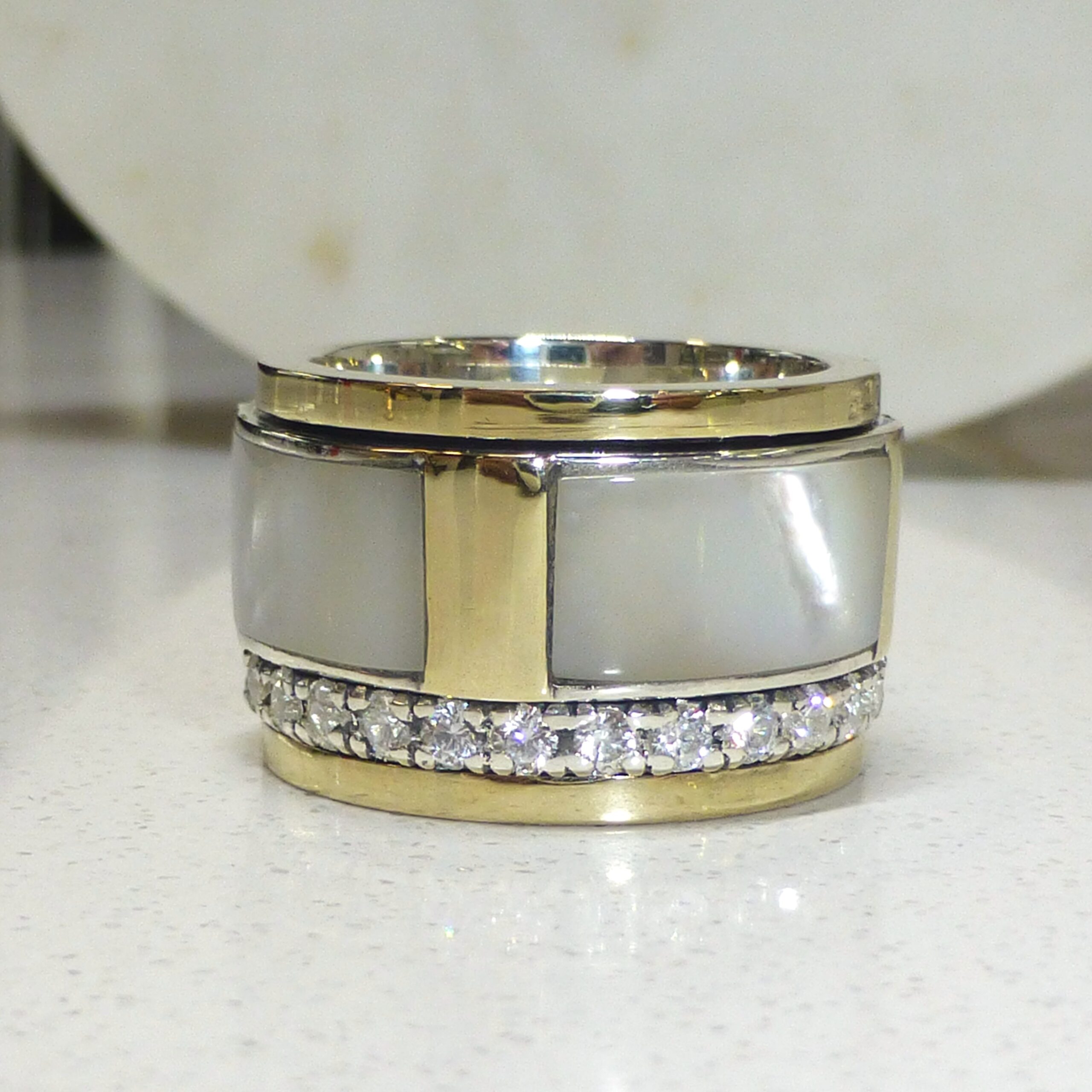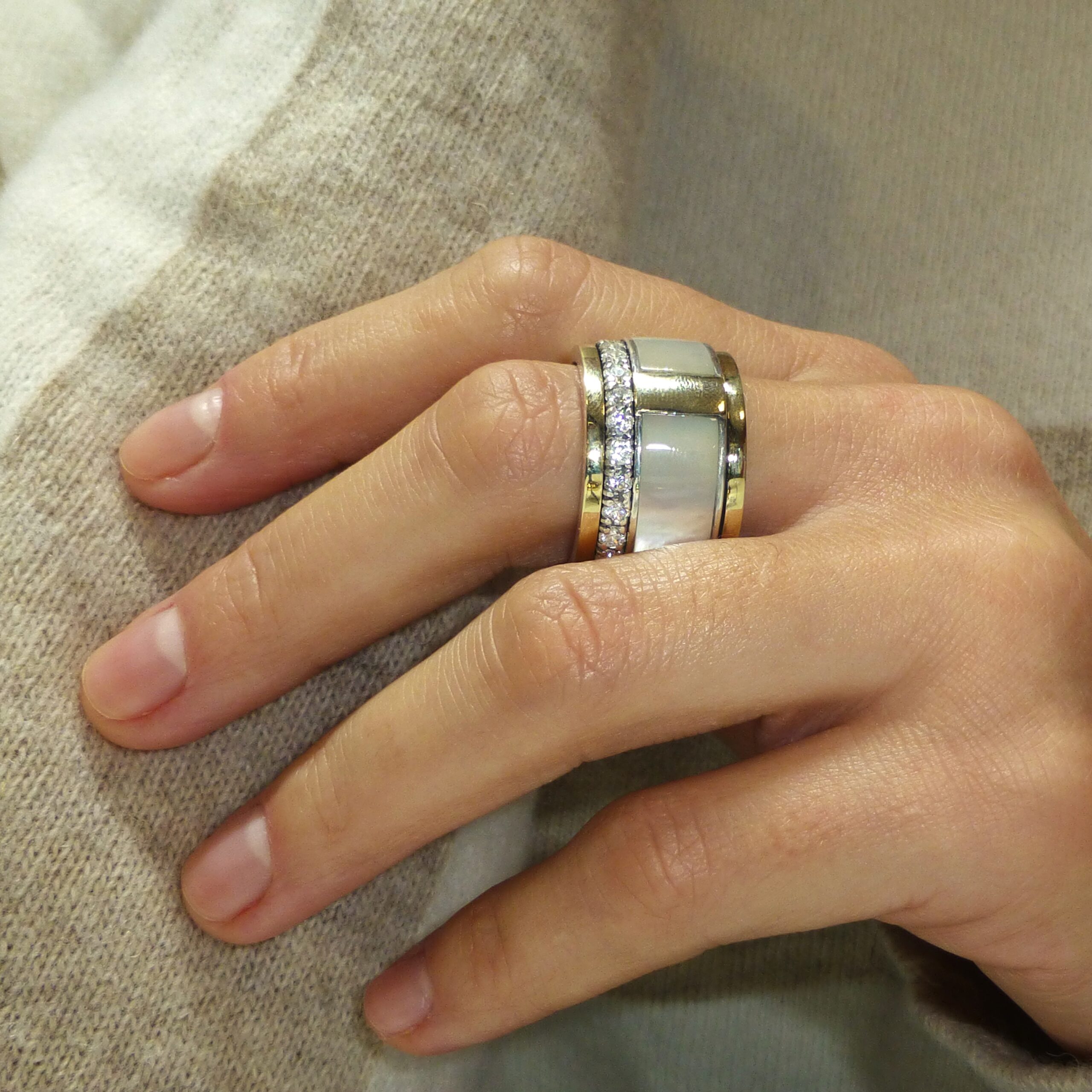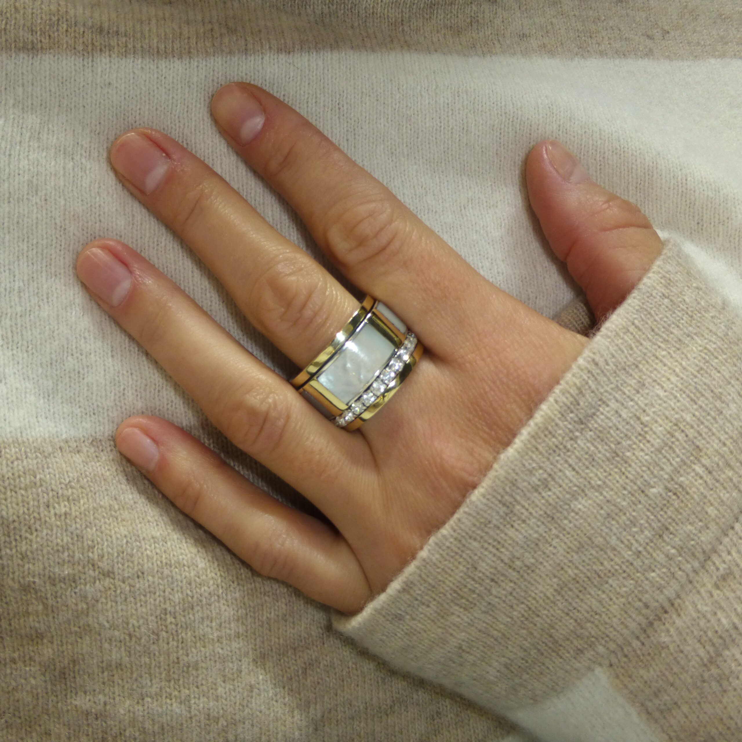Anillo en Plata de 1ª Ley con Madreperla o Nácar, con Circonitas.