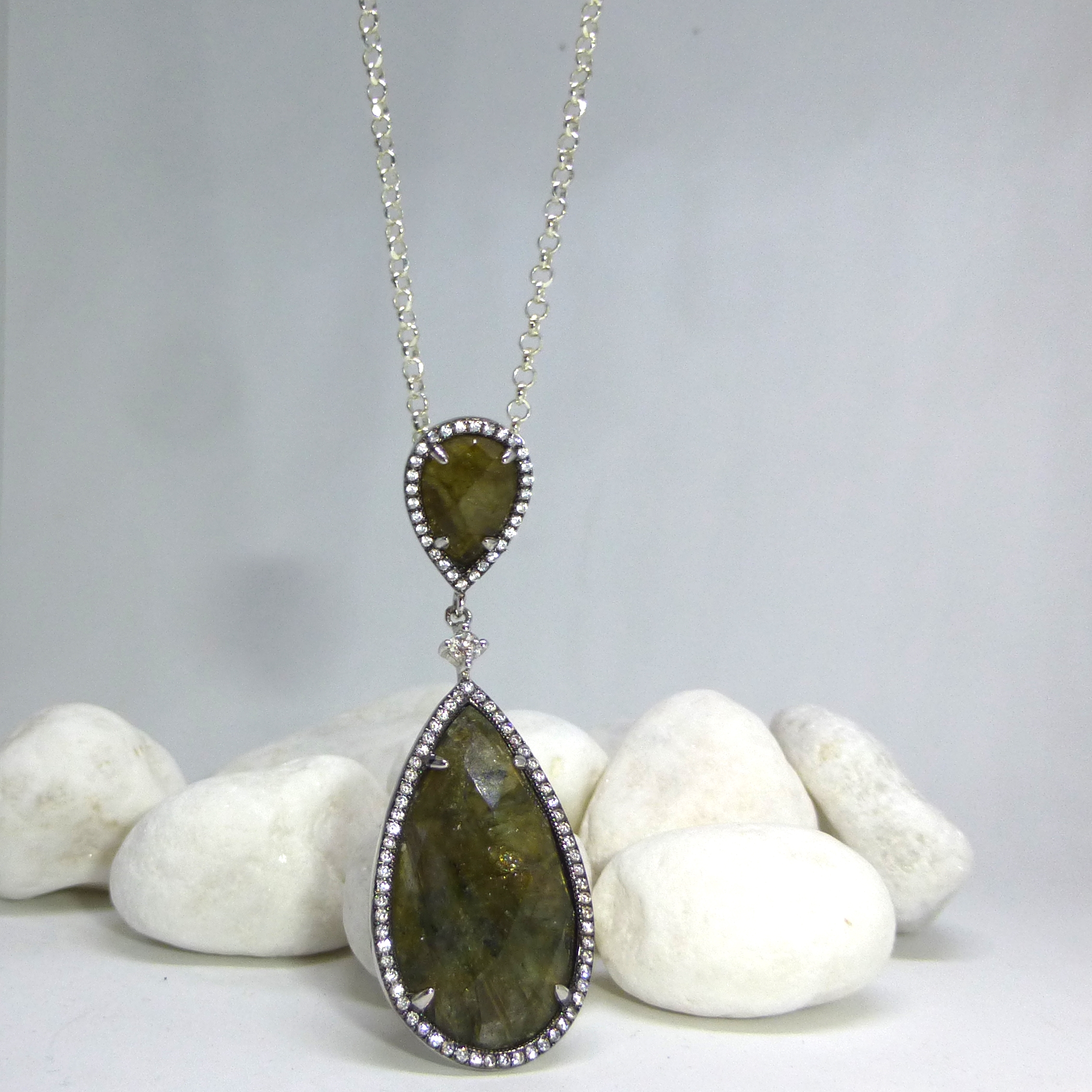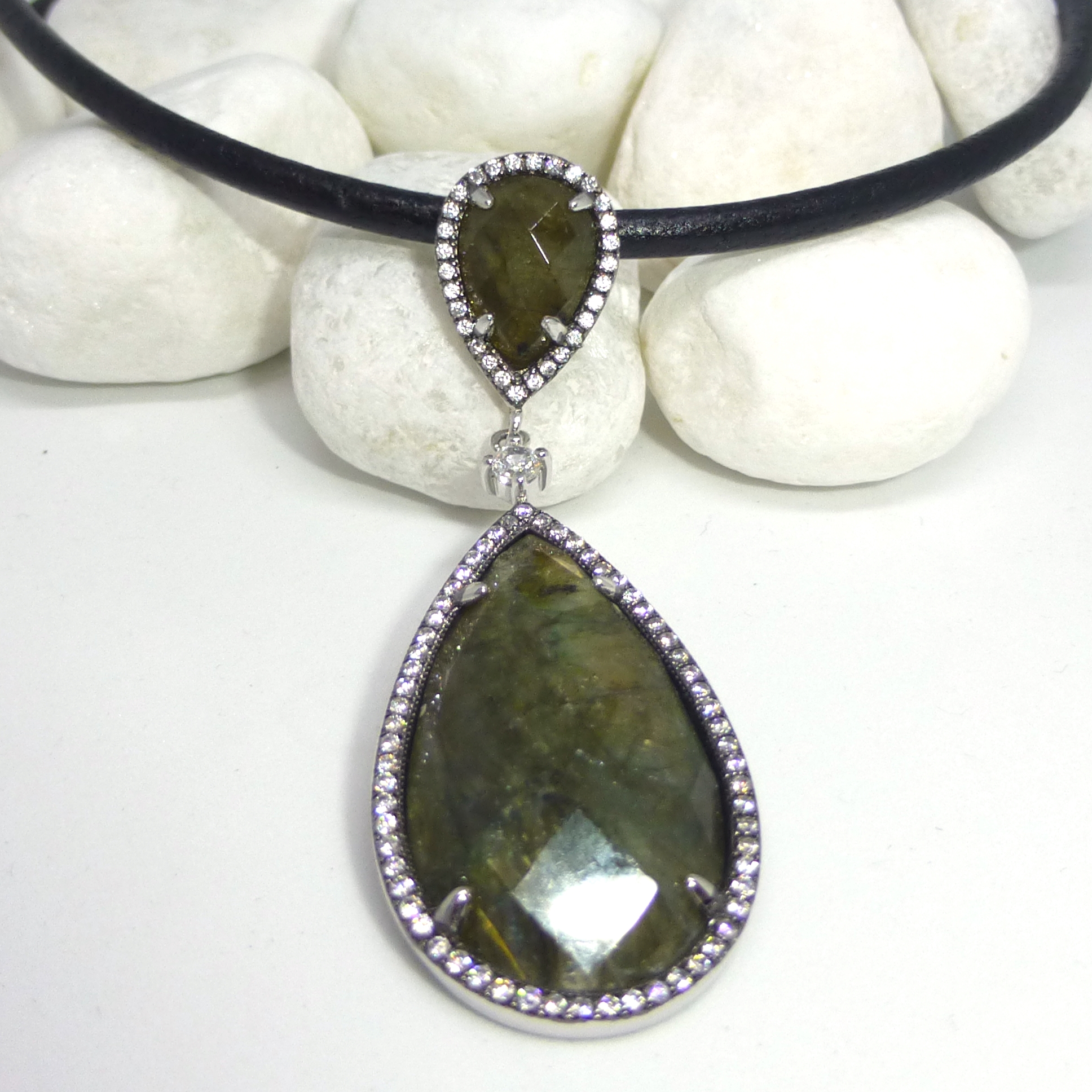 Colgante realizado en Plata de 1ª Ley con piedra natural Labradorita.