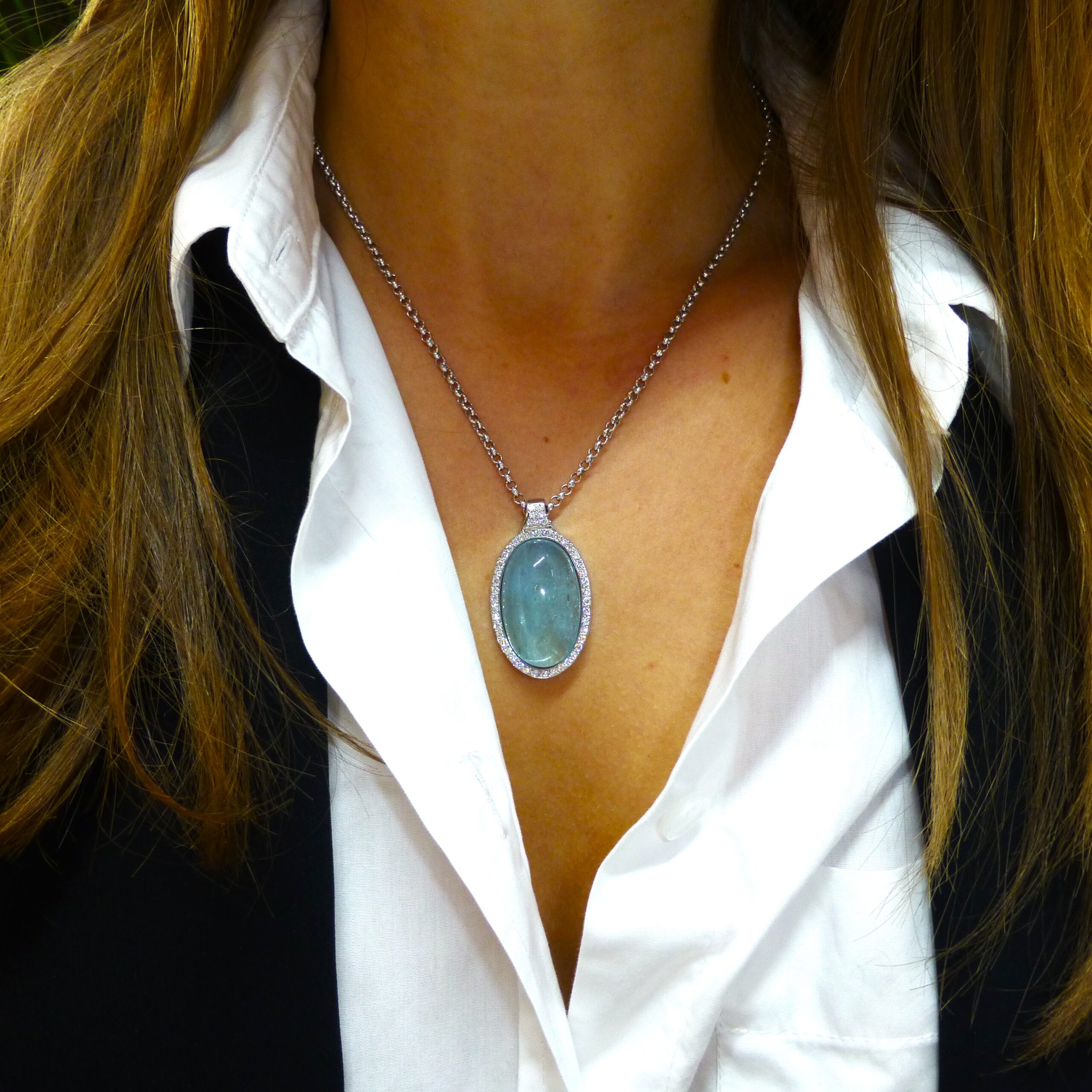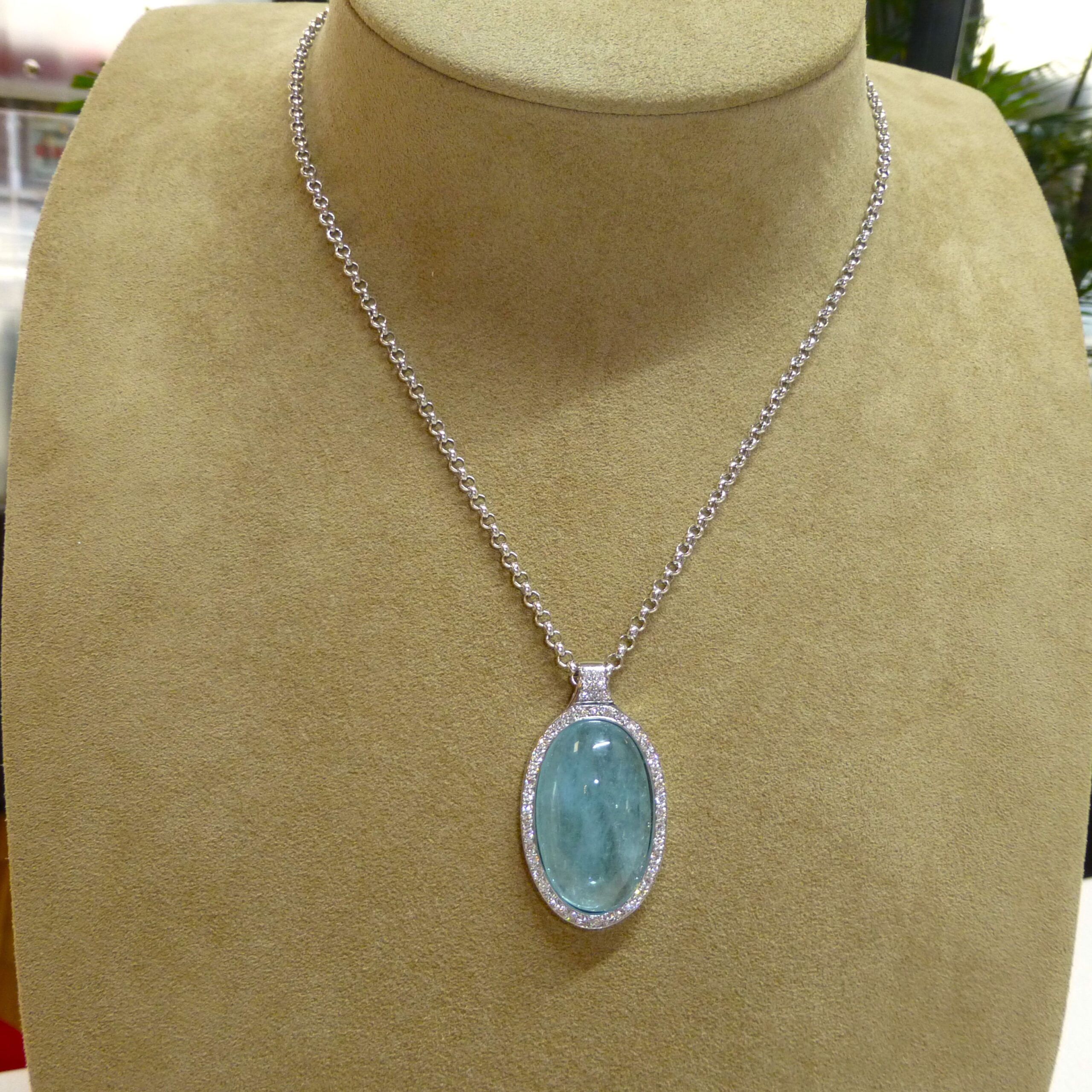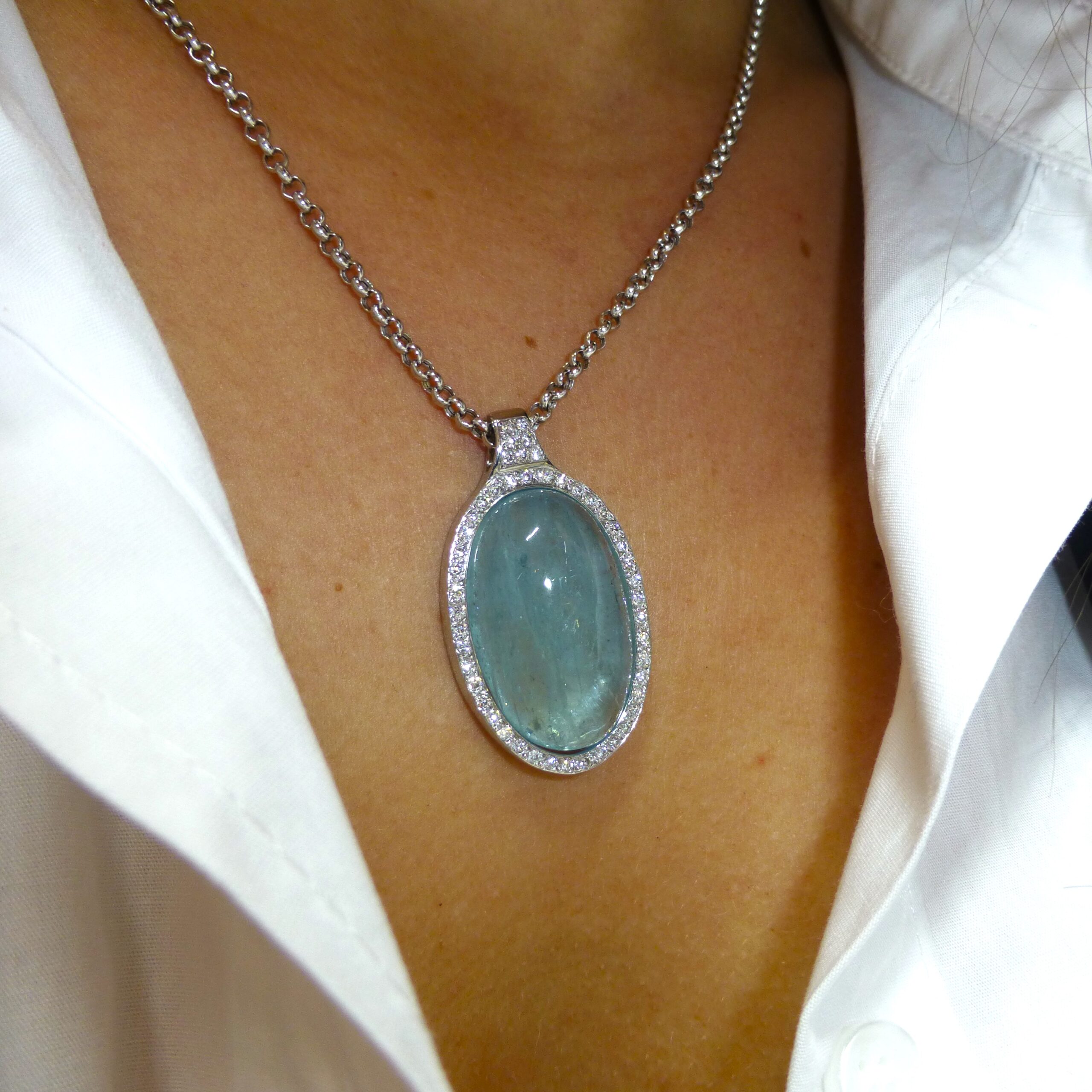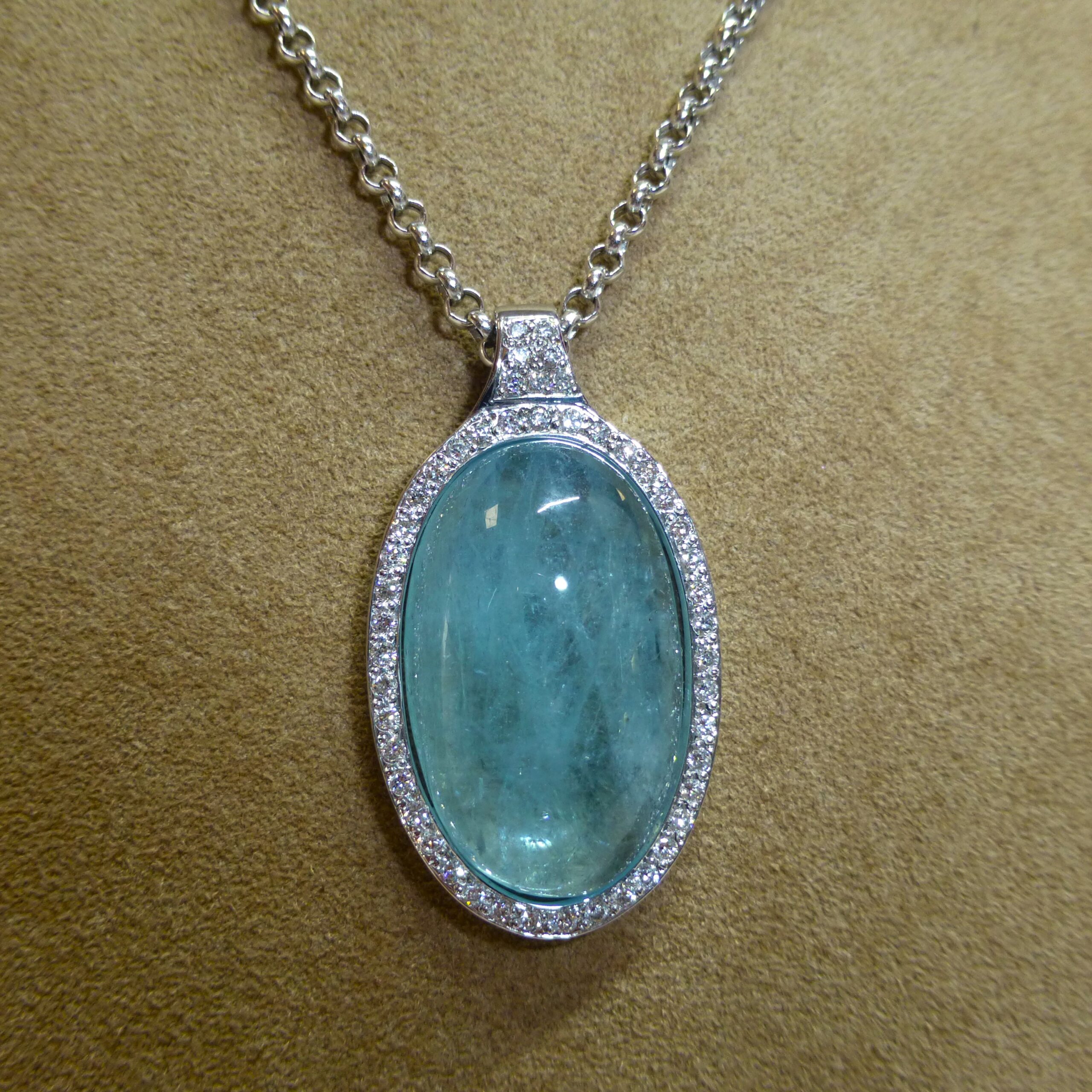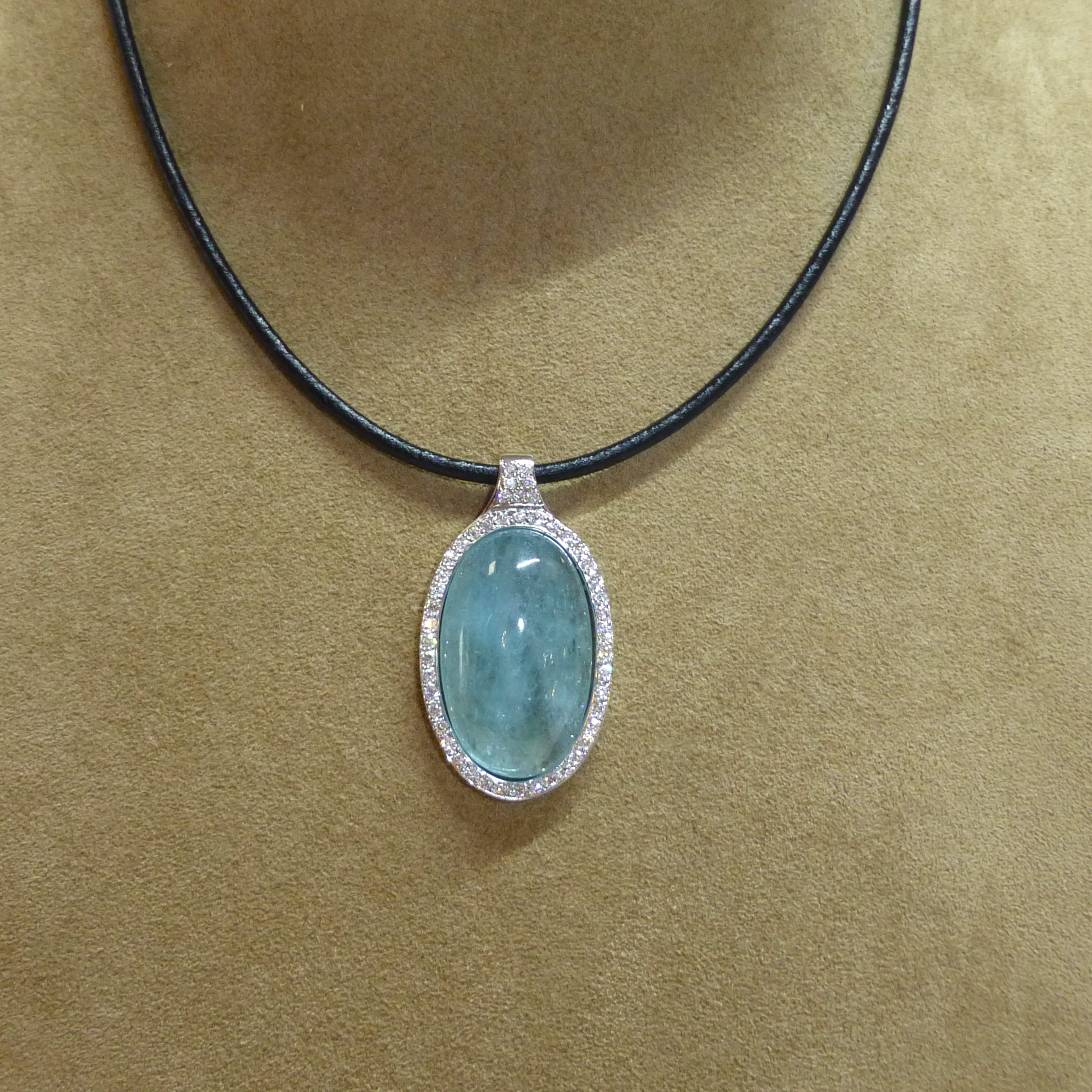 Aguamarina talla cabujón de 36 ct y Diamantes de un total de 0.80 ct.
