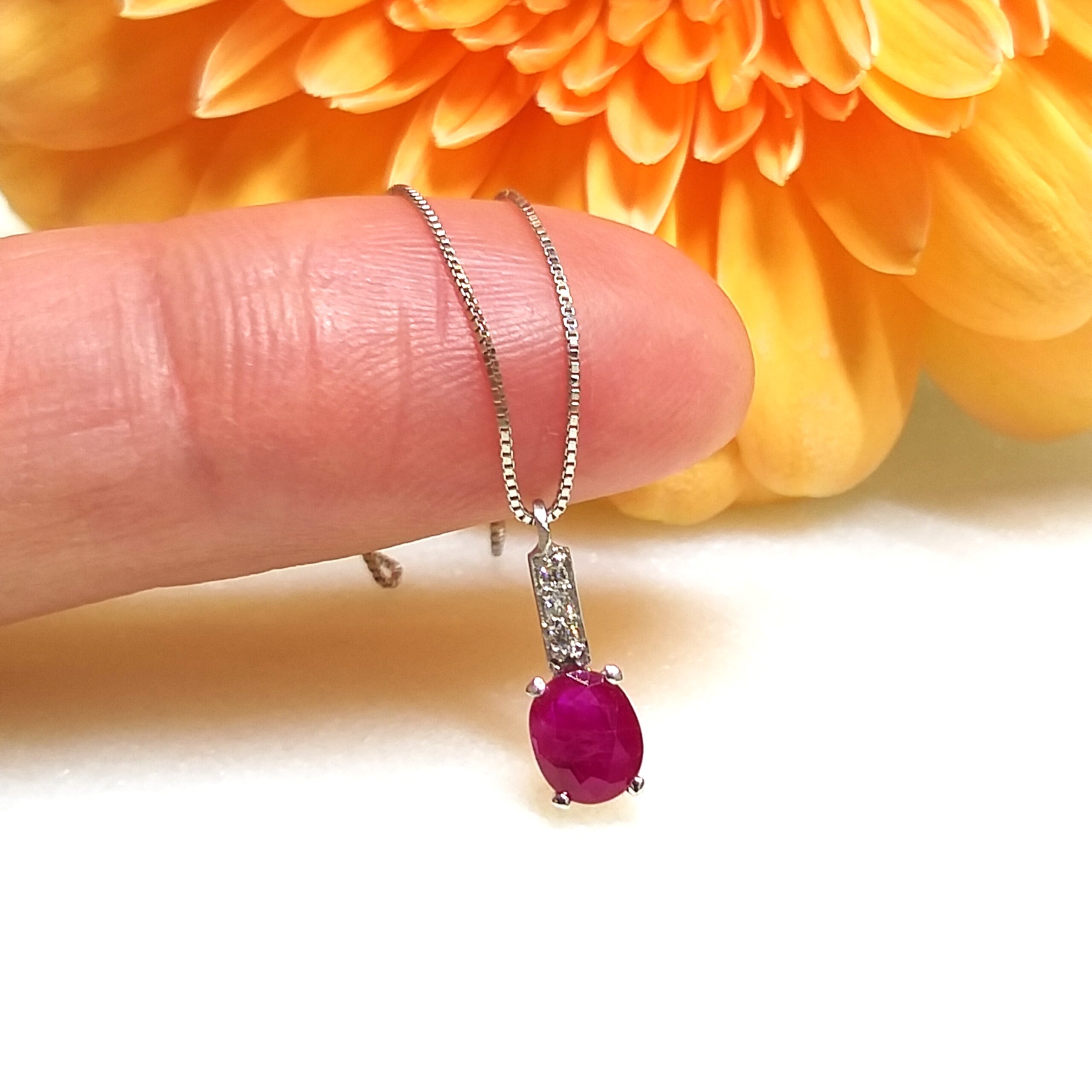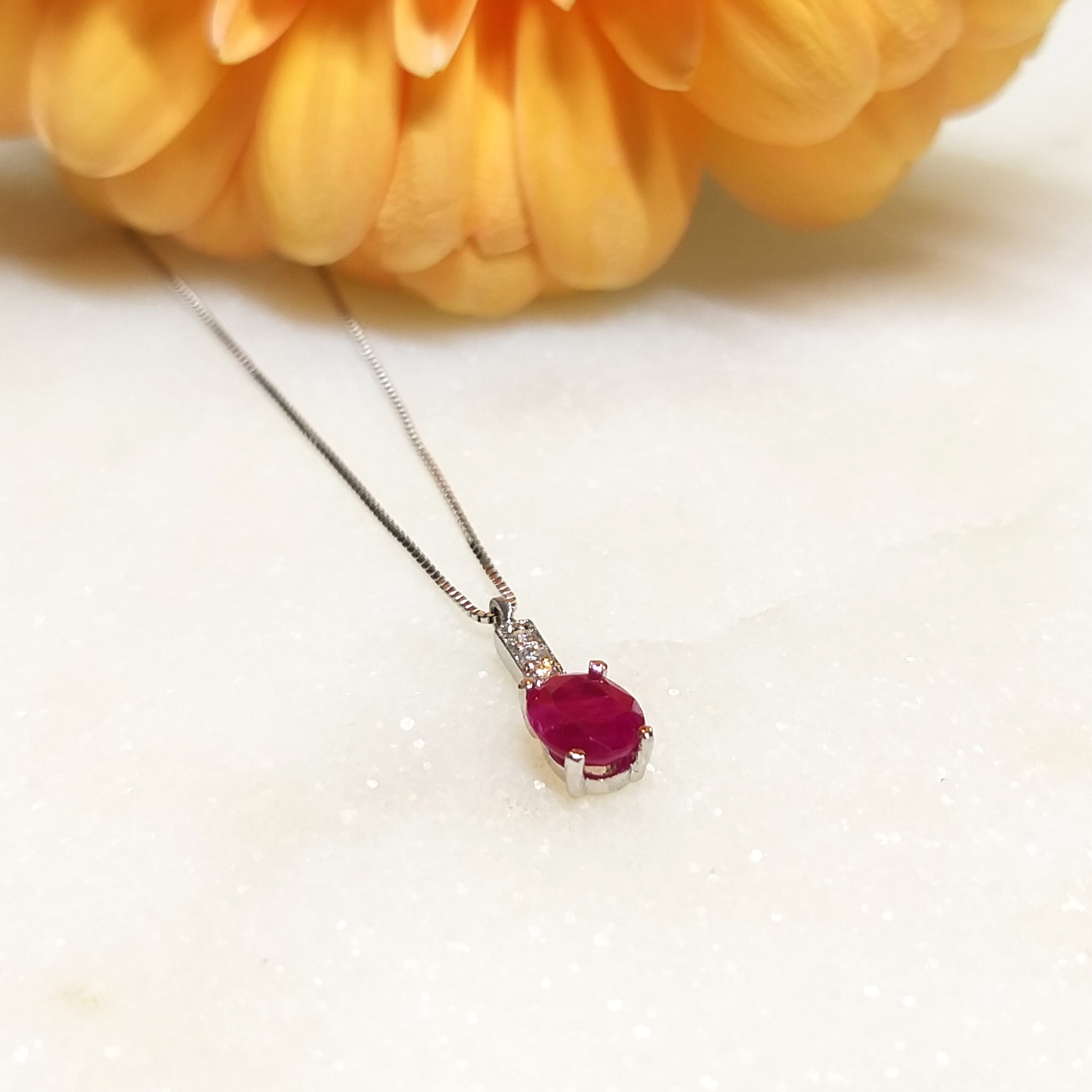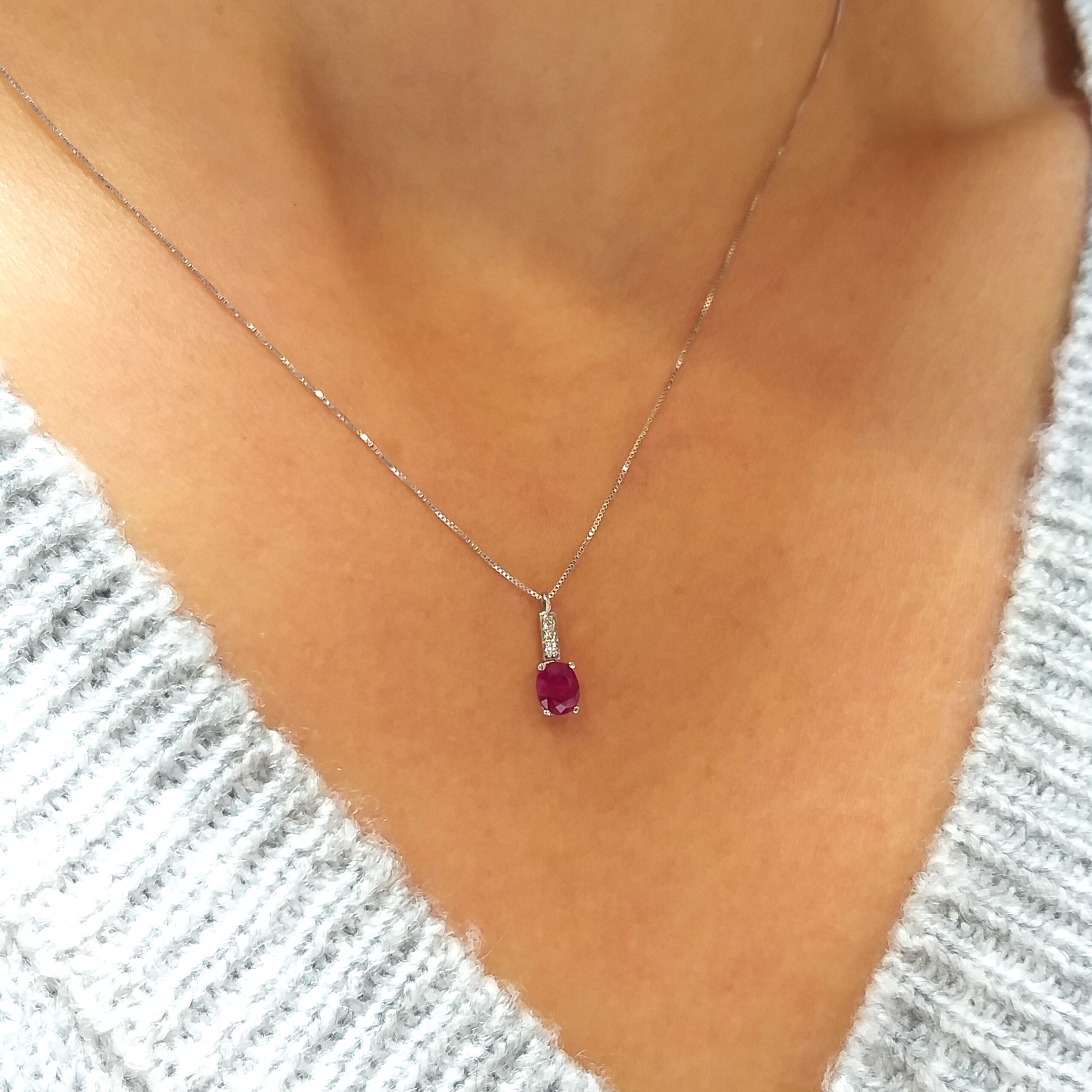 Collar Oro blanco con Diamantes y Rubí