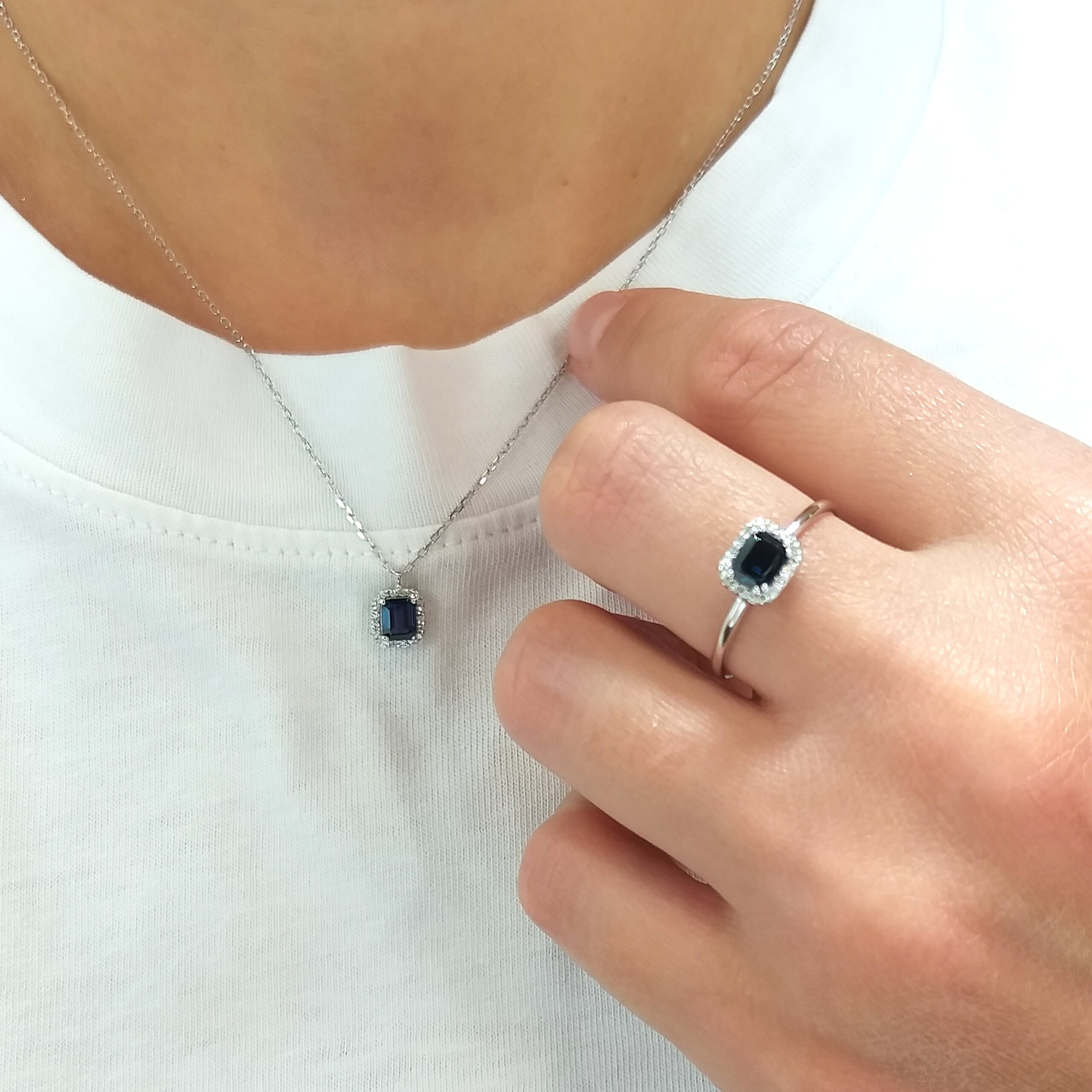 Collar, tipo gargantilla, en Oro blanco de 1ª Ley con Zafiro y Diamantes.