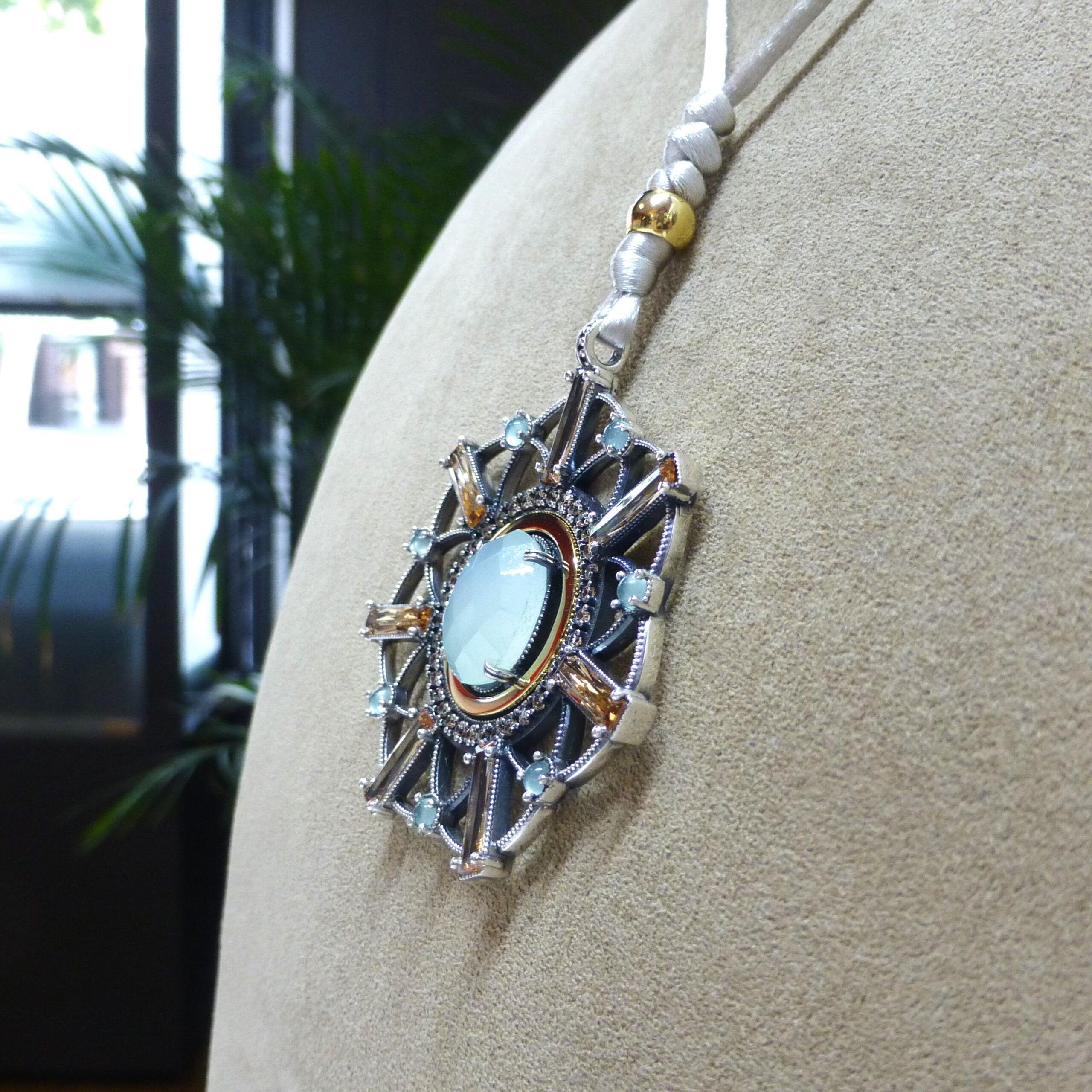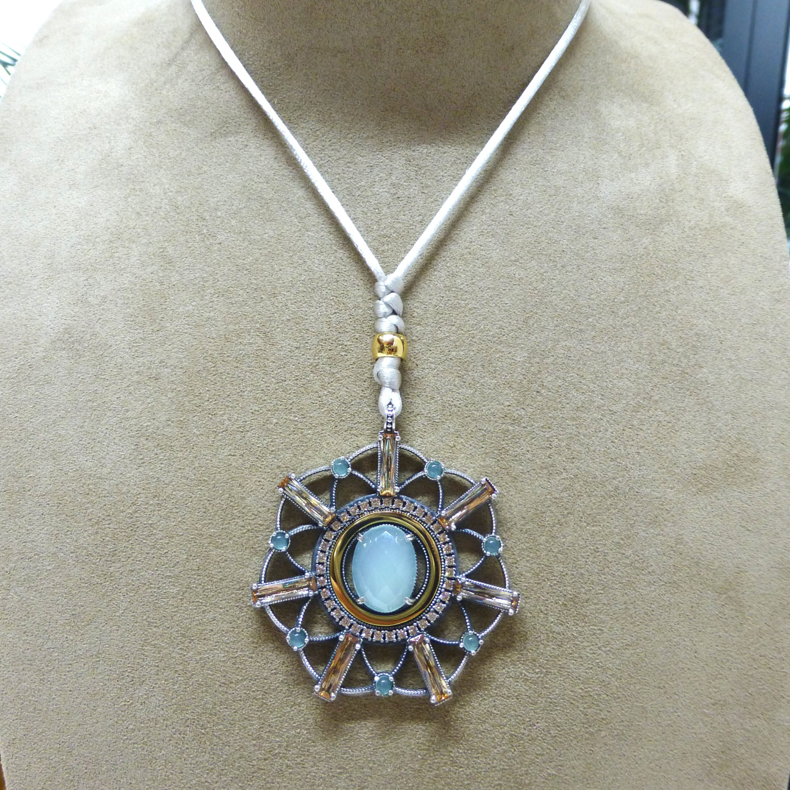 Collar en Plata de 1ª Ley con Calcedonia y Circonitas.