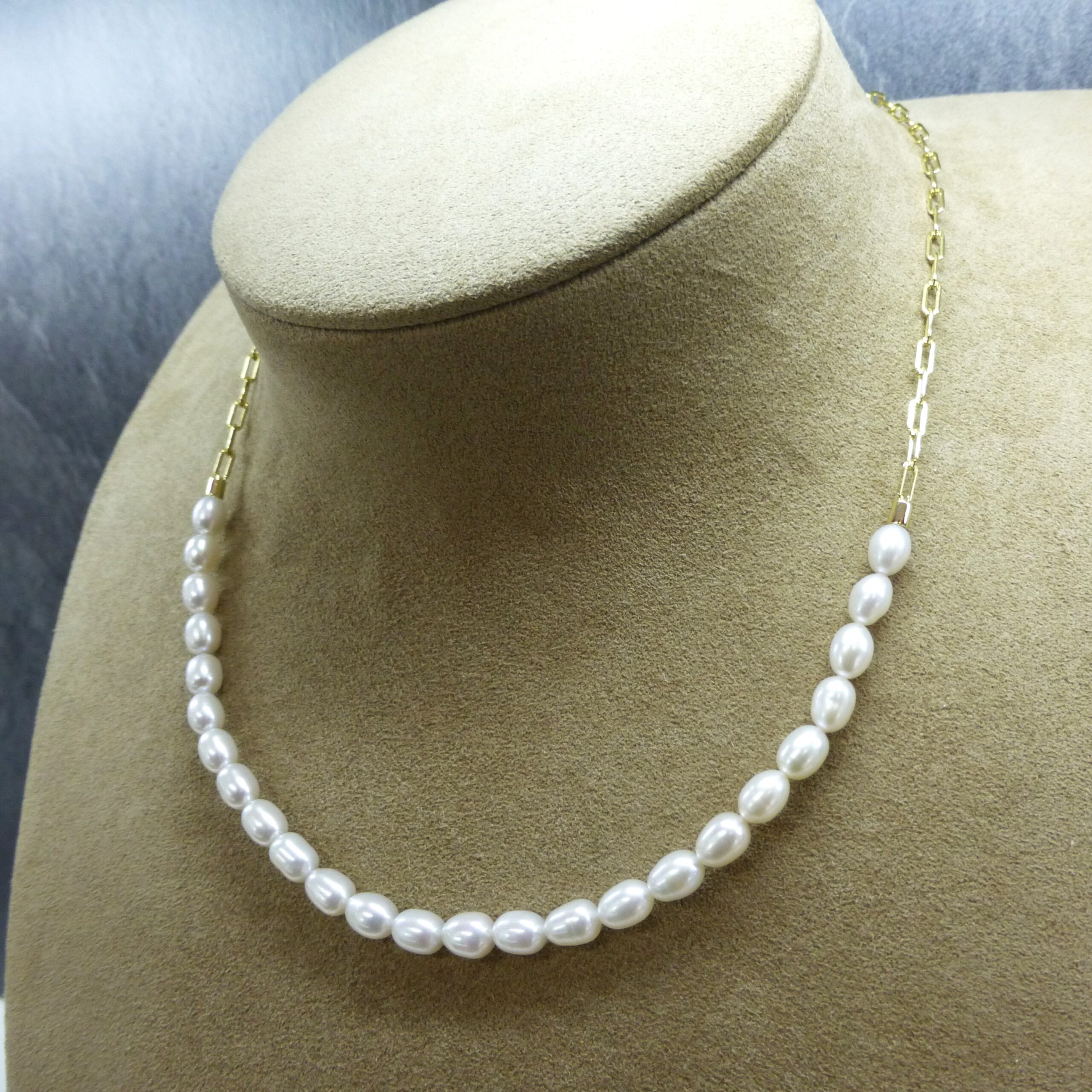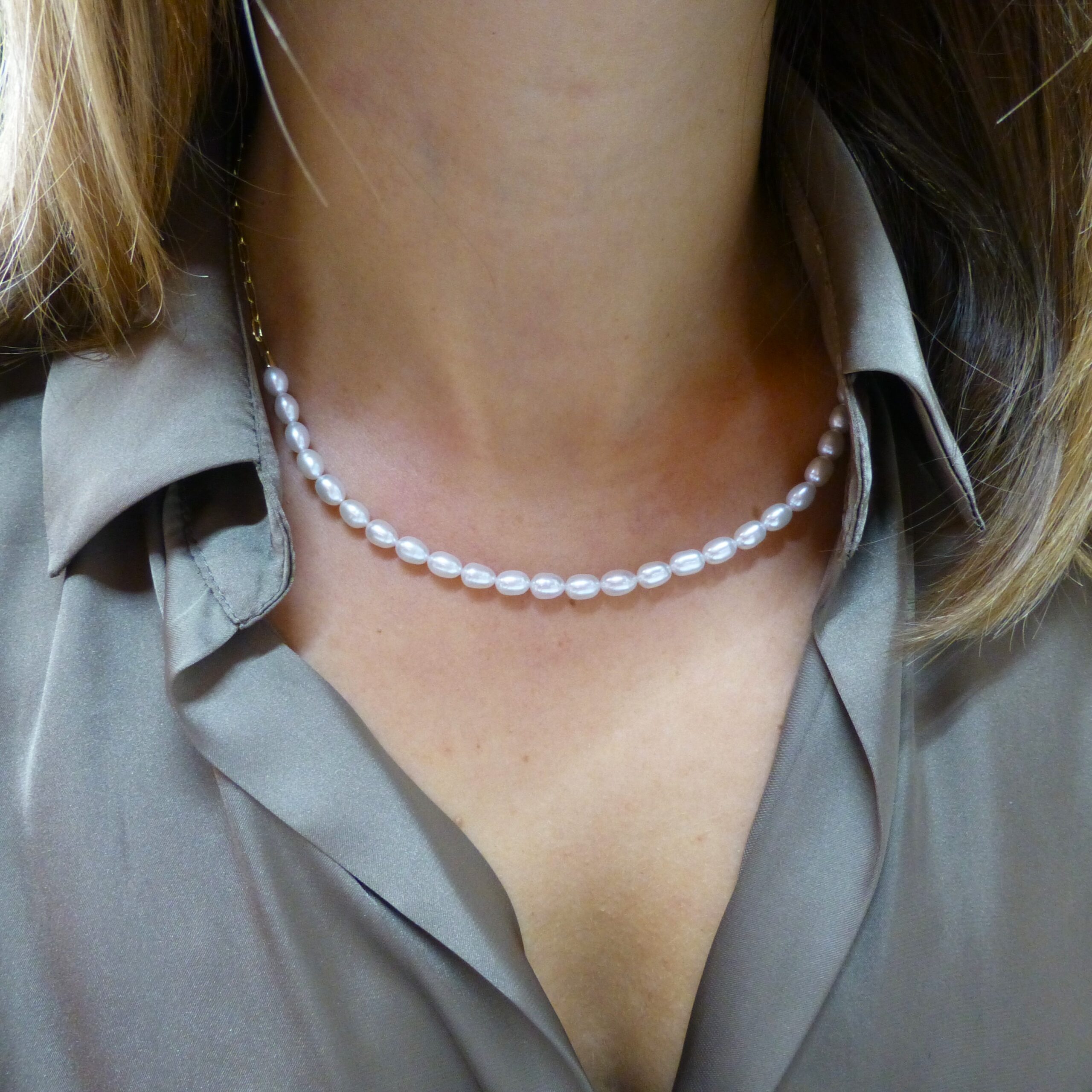 Collar con perlas, tipo gargantilla, en Plata de 1ª Ley con baño de Oro de 18 k.