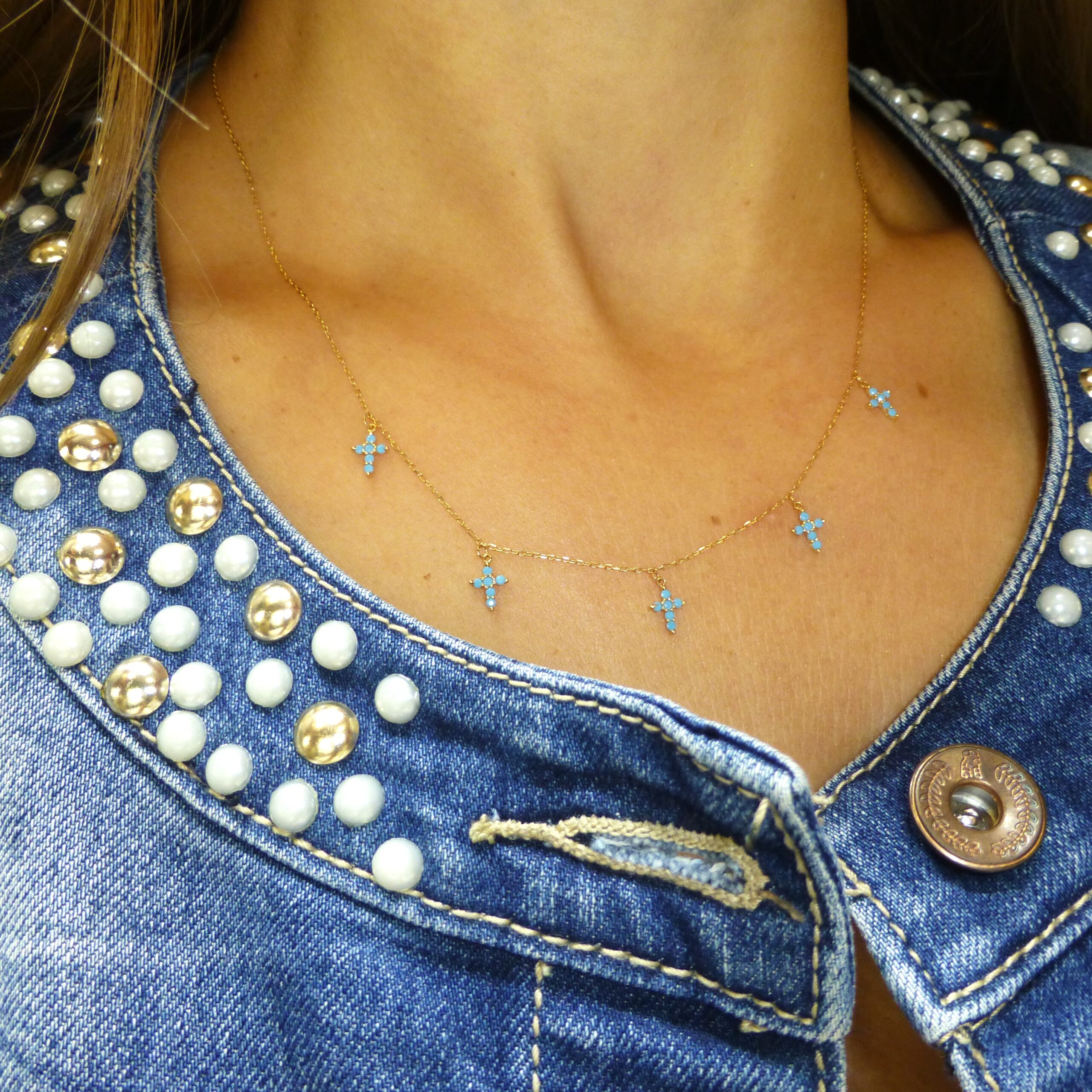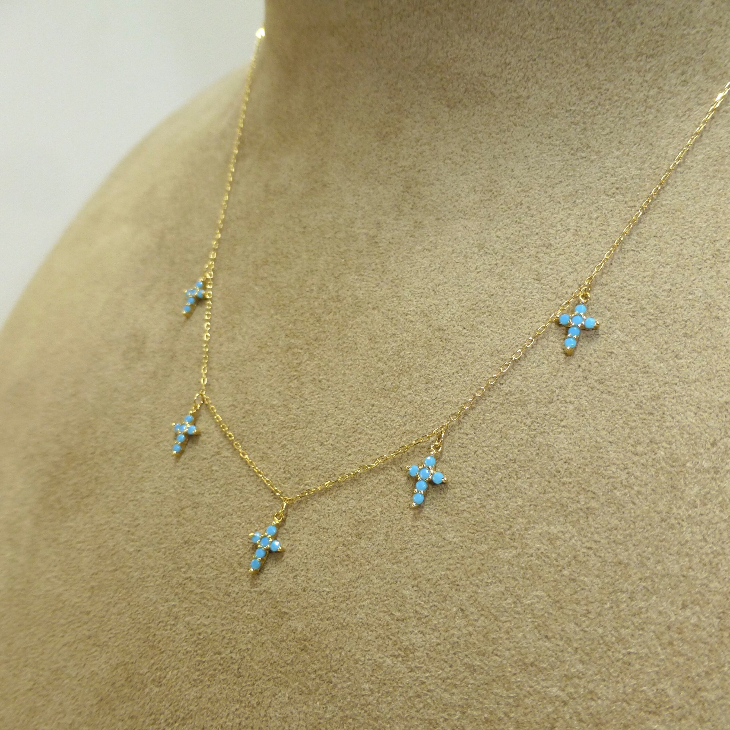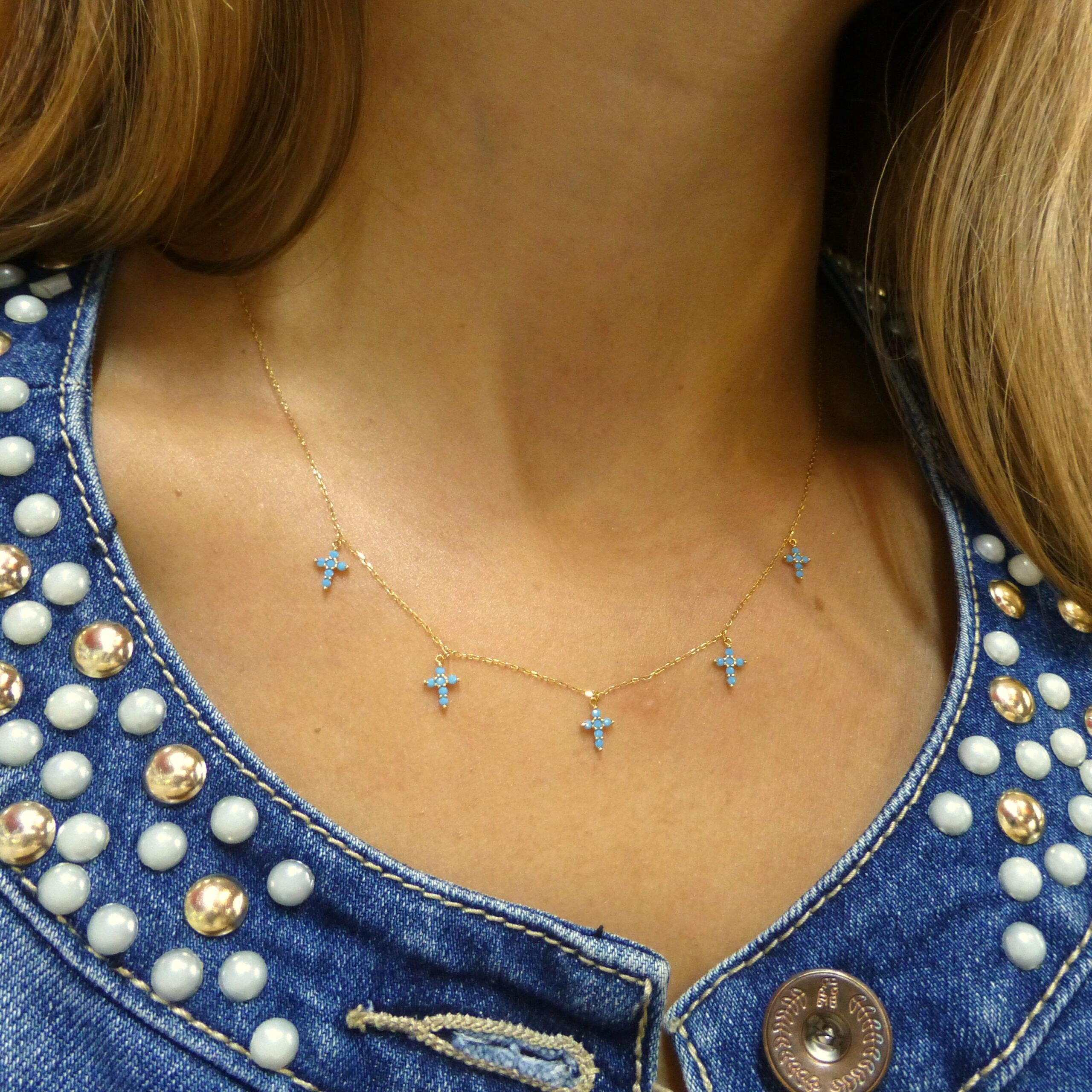 Gargantilla Oro Cruces Turquesa