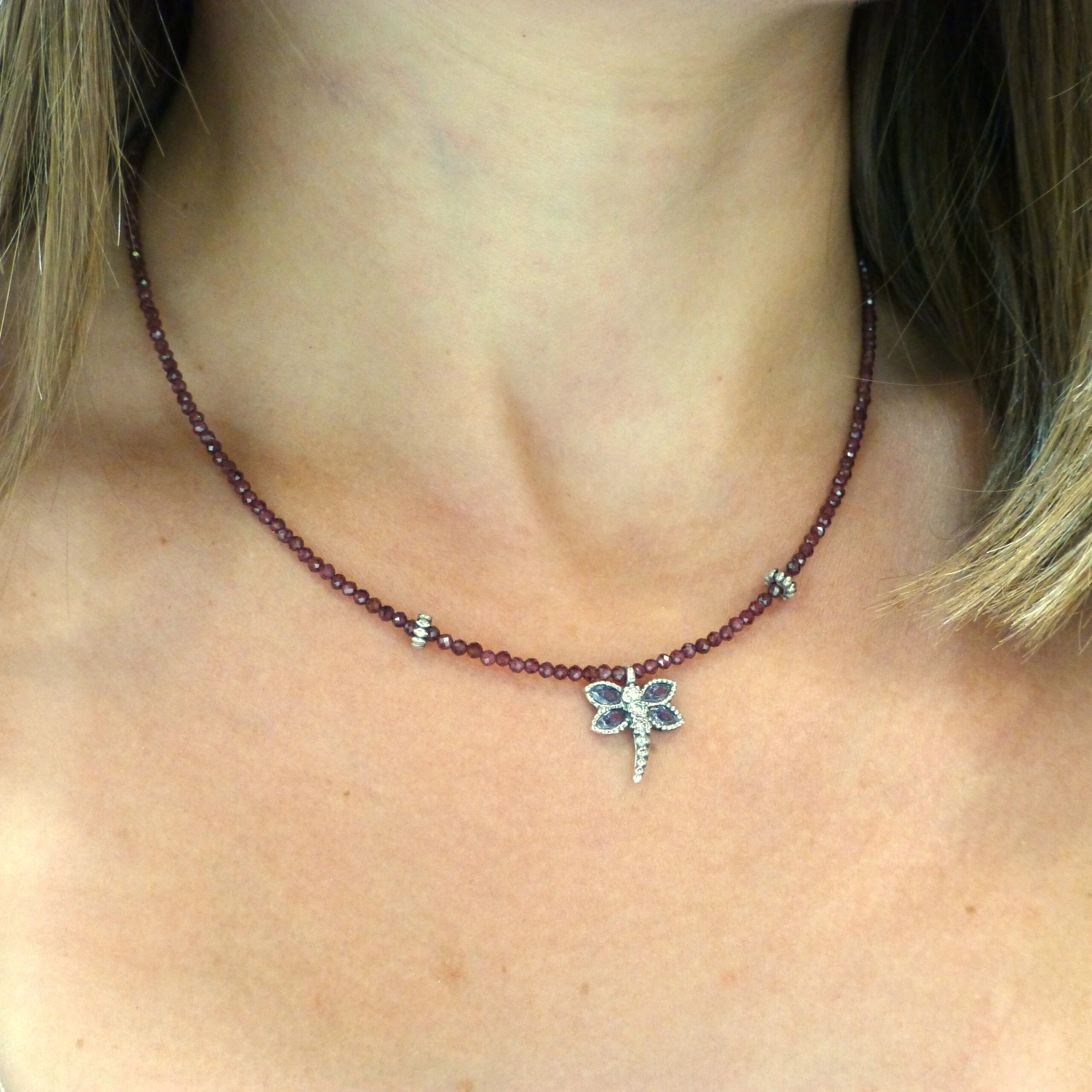 Gargantilla Plata Espinela Roja Libélula