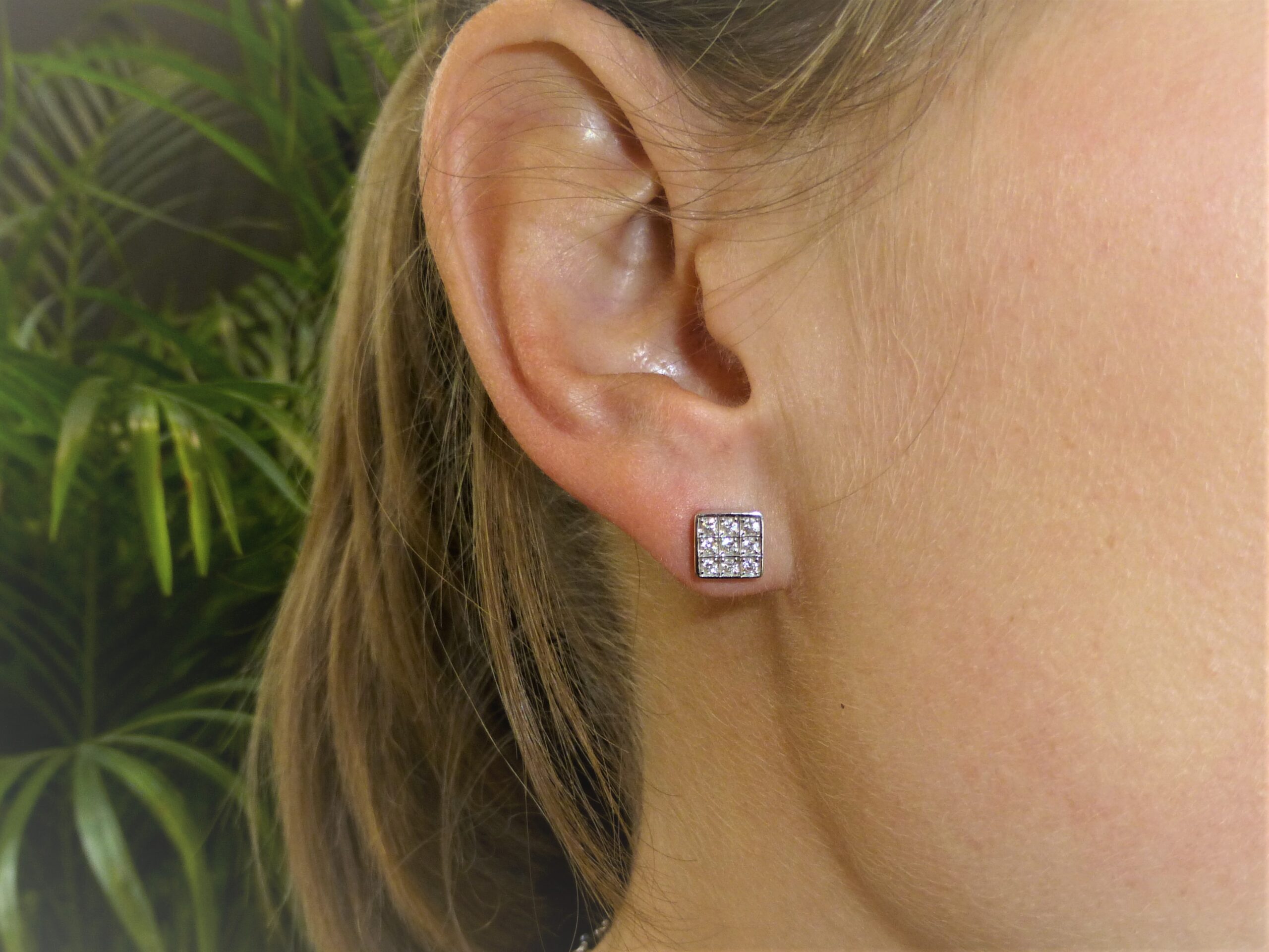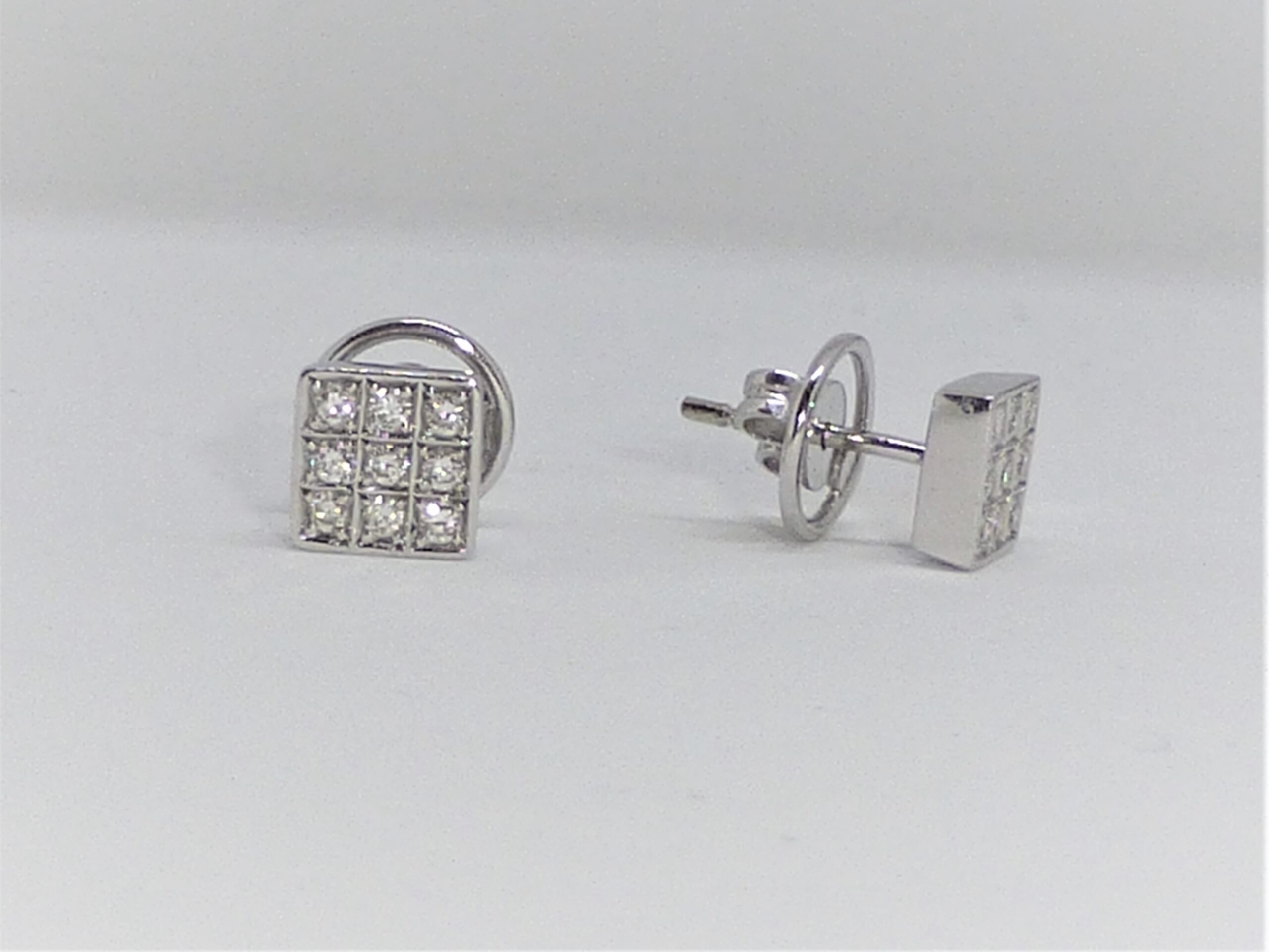 Pendientes tipo dormilonas en Oro blanco de 1ª Ley con Diamantes.