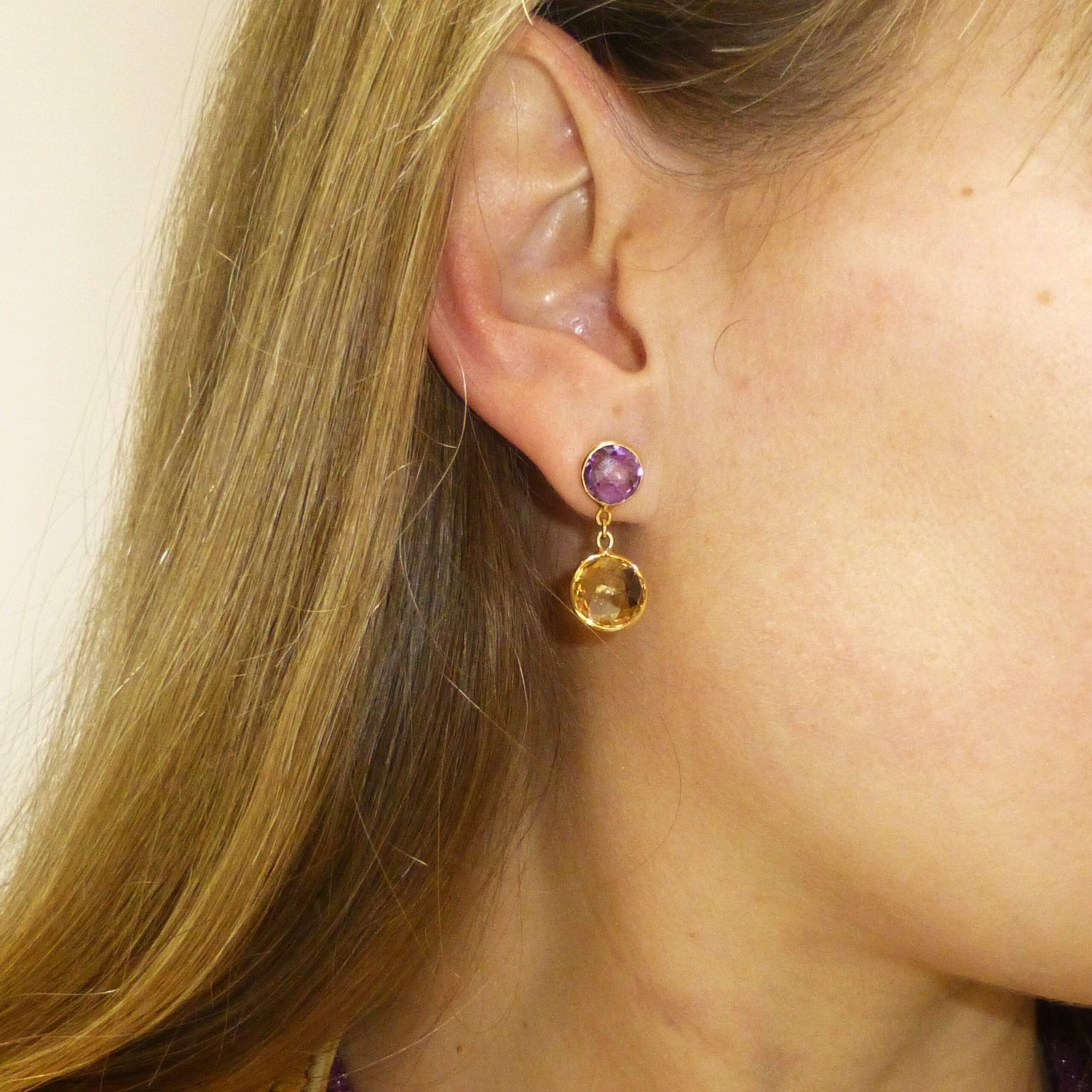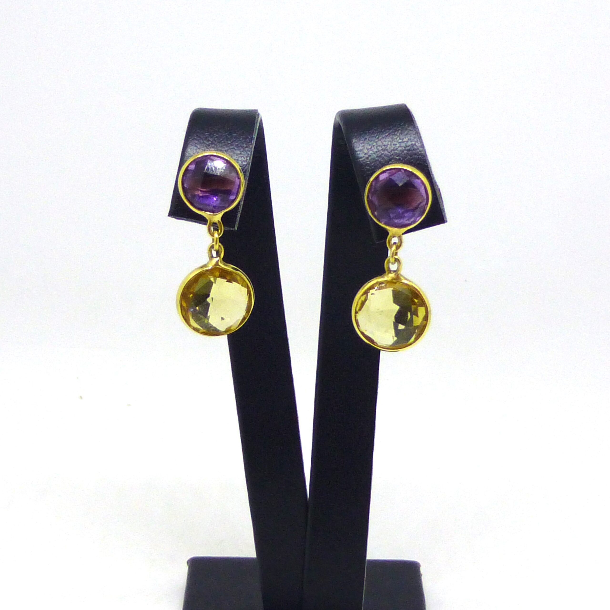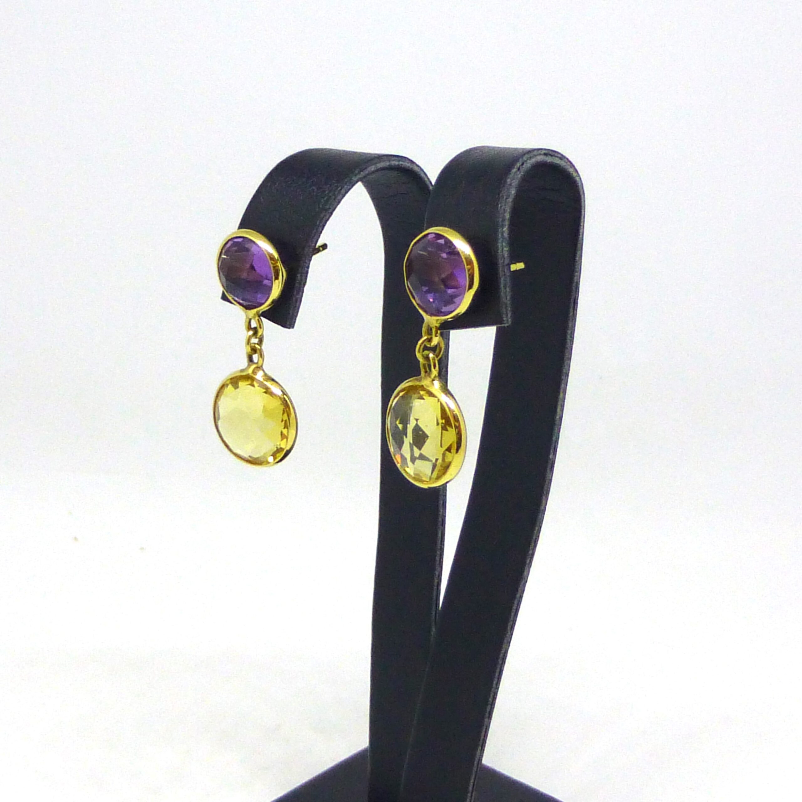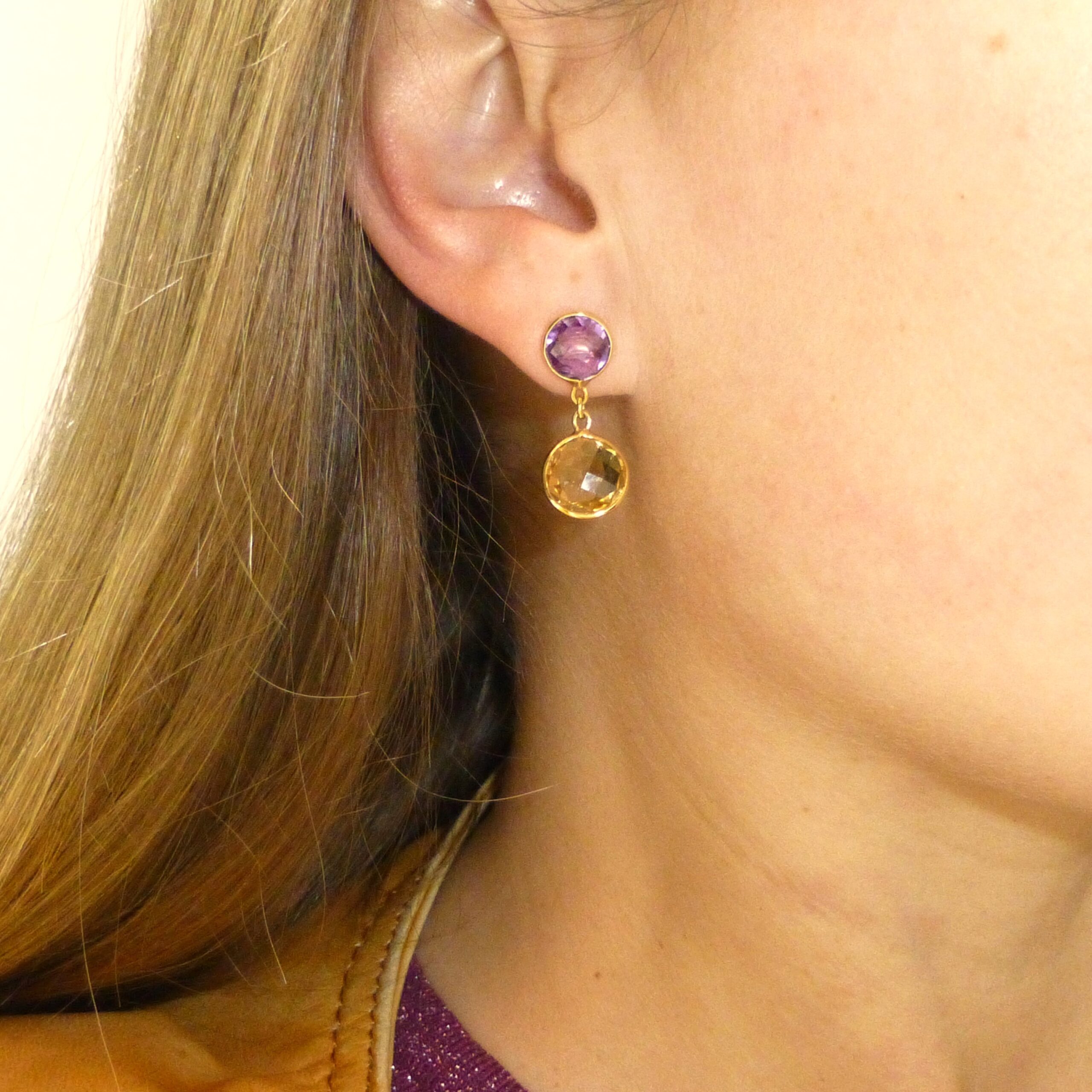 Pendientes en Oro de 1ª Ley con Citrino y Amatista.