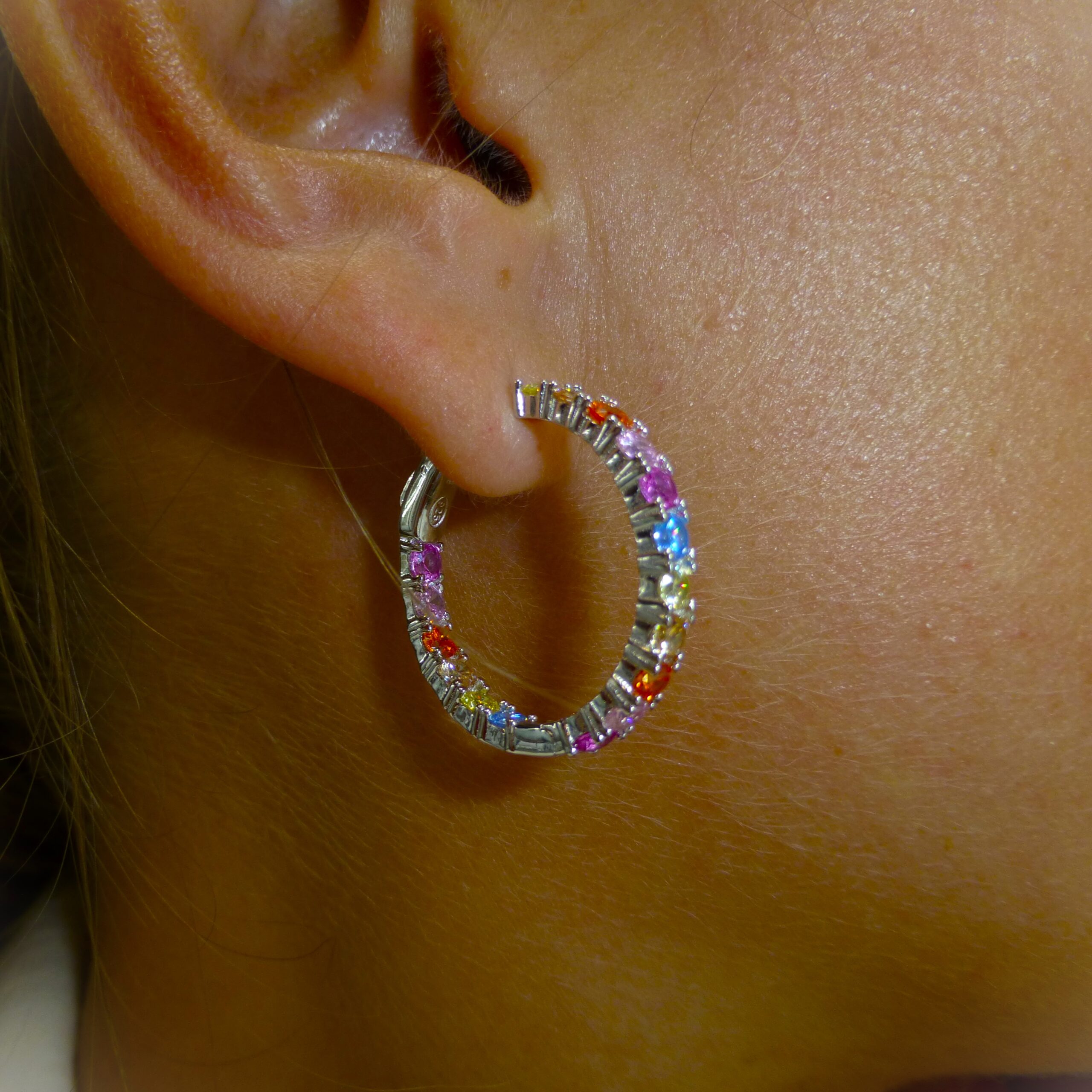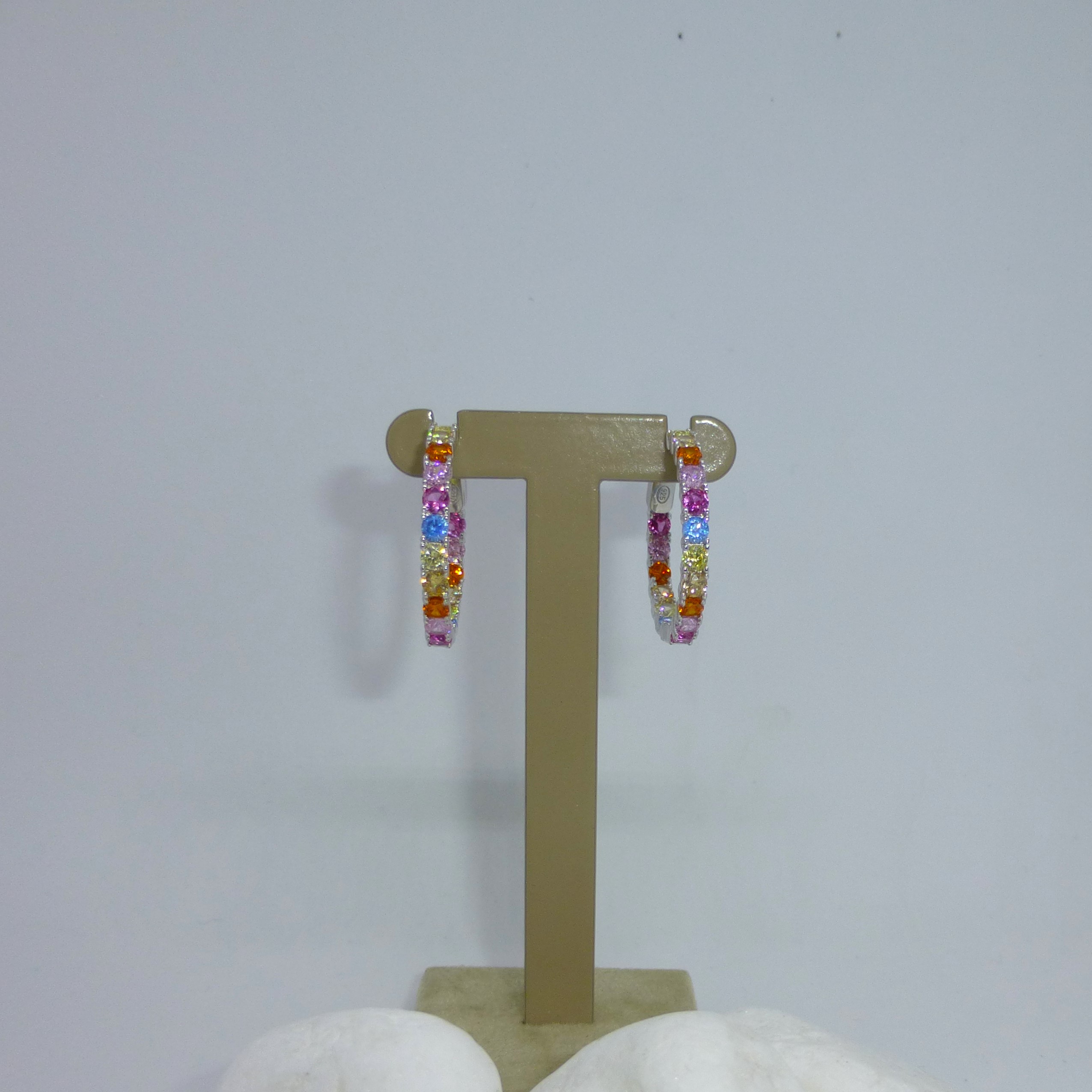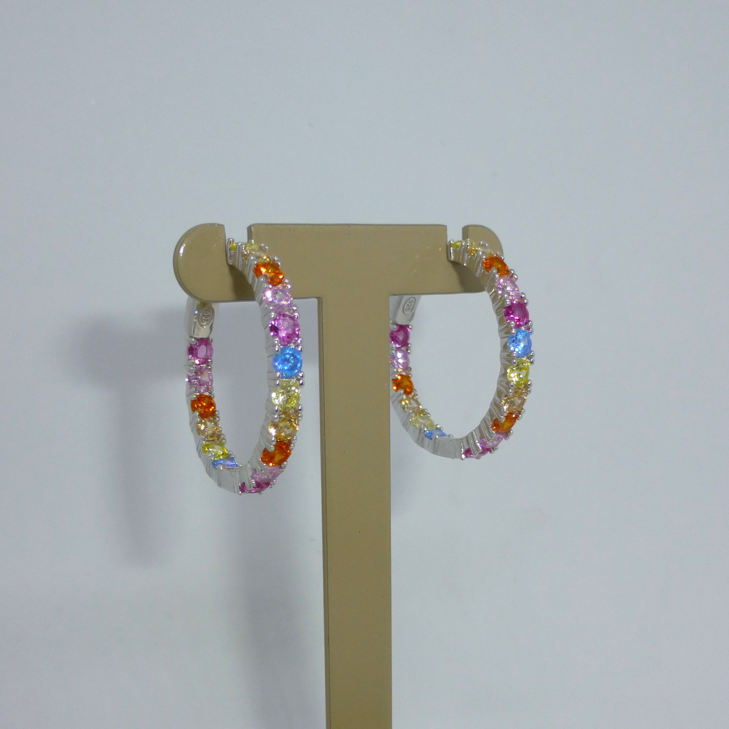 Pendientes,tipo aros, en Plata de 1ª Ley con circonitas de diferentes colores.
