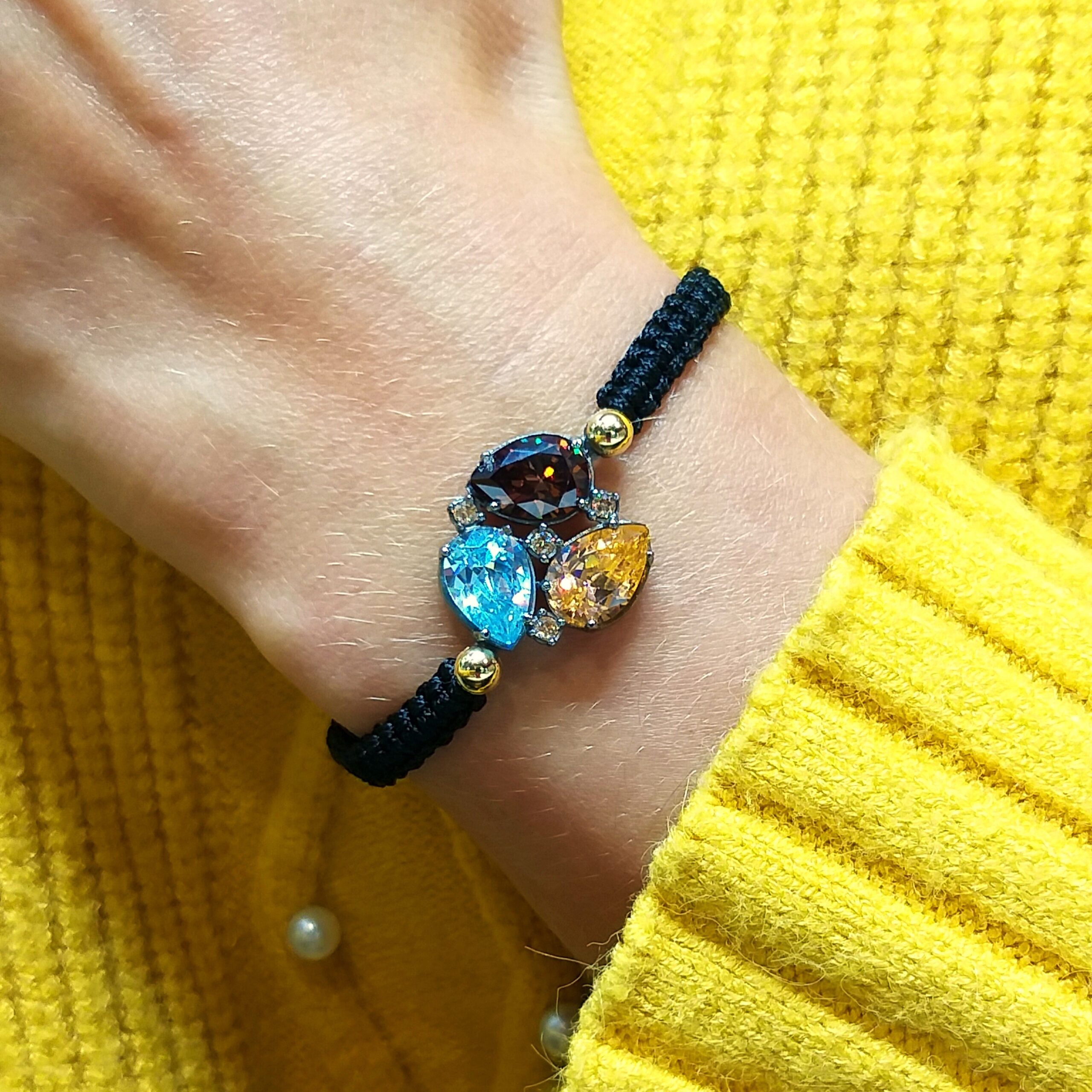 Pulsera ajustable en Plata y Macramé con Circonitas.